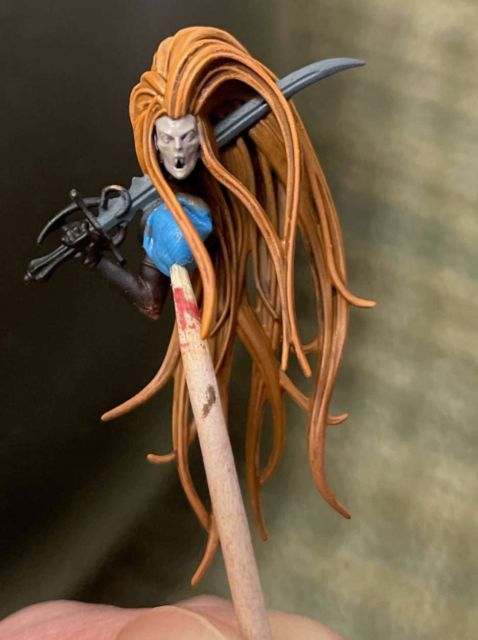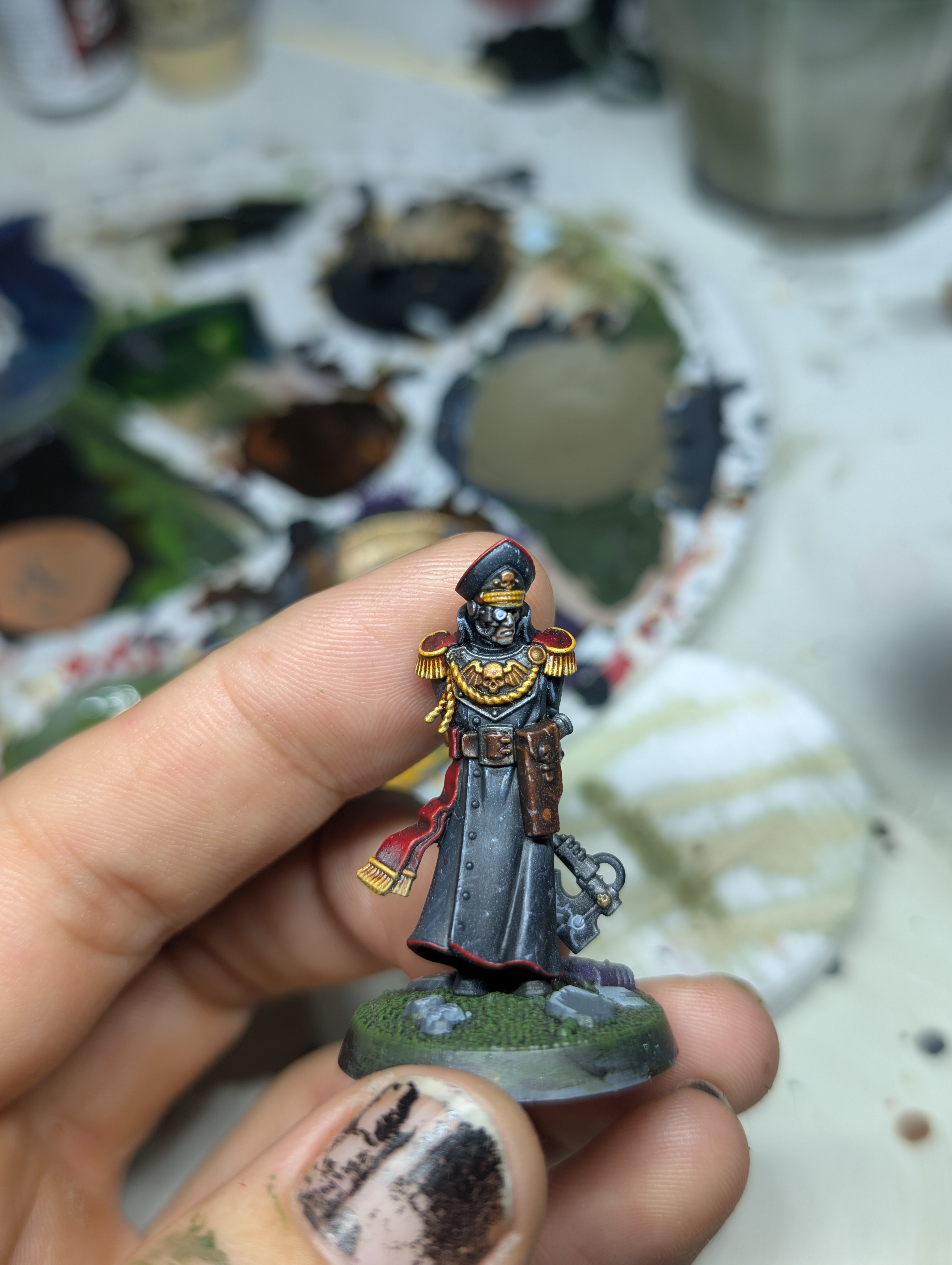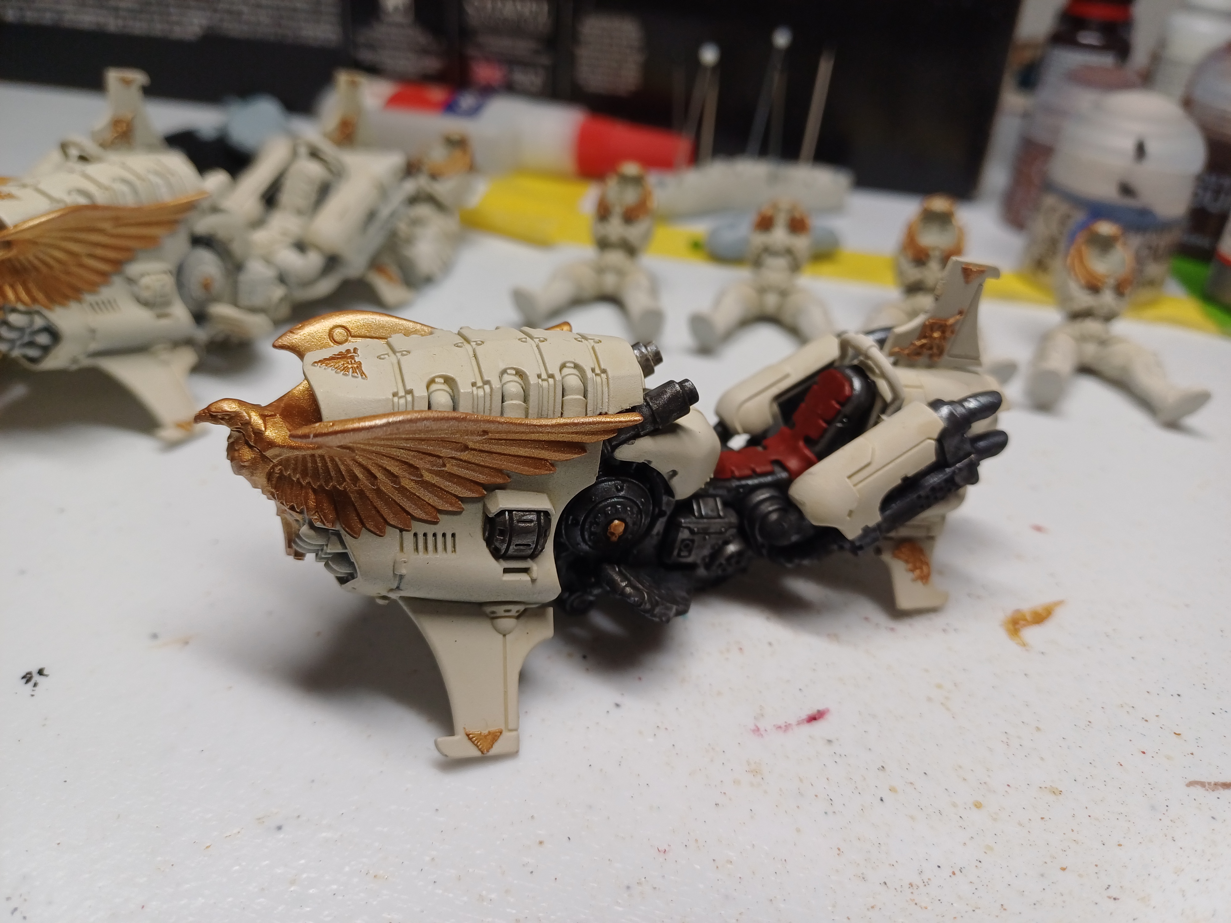 my favorite part about oldhammer models was that i would build them in sensible assemblies, build a torso and legs, paint it, paint the arms and gun, attach to leg/torso, paint head, glue it in.