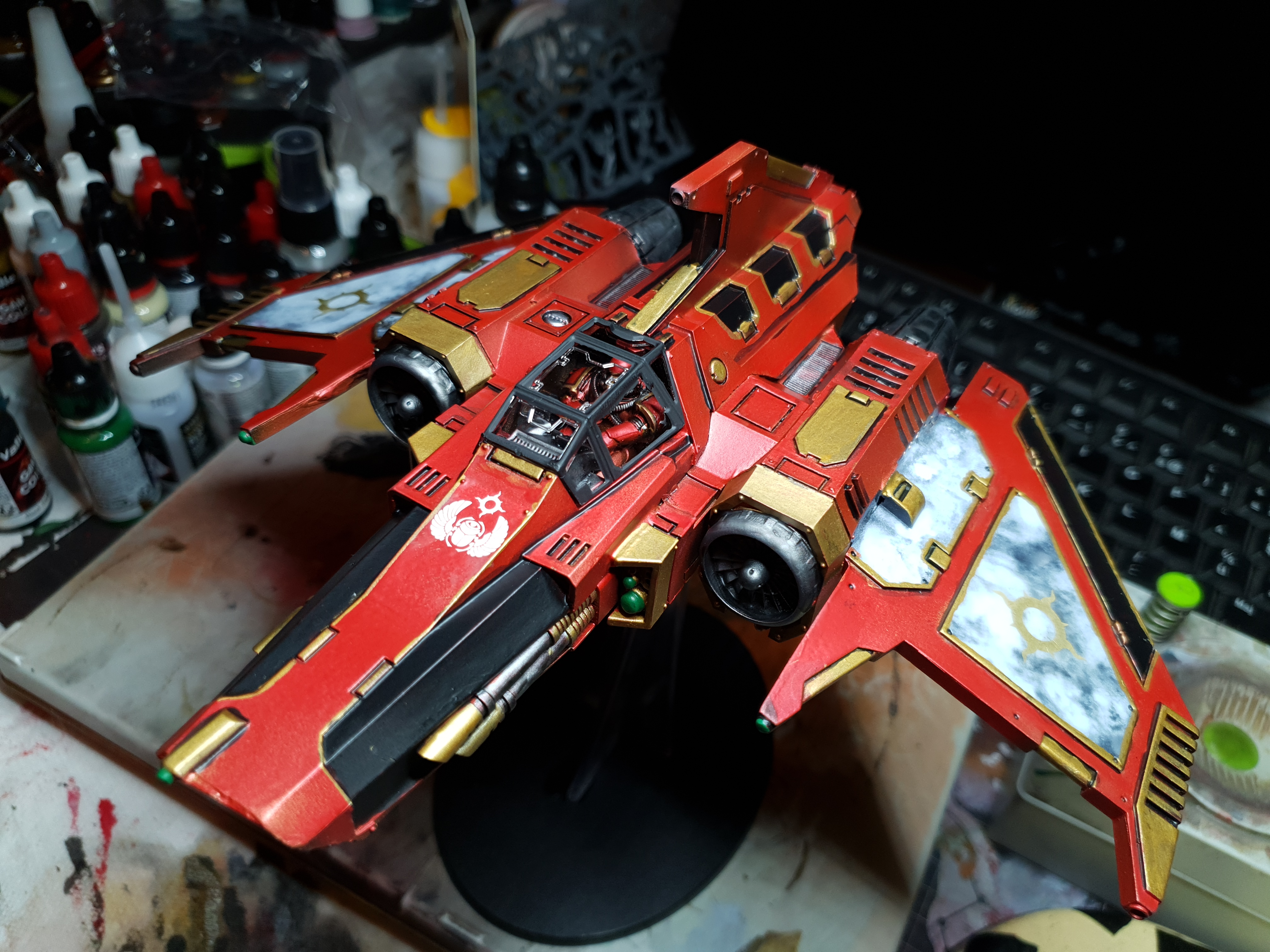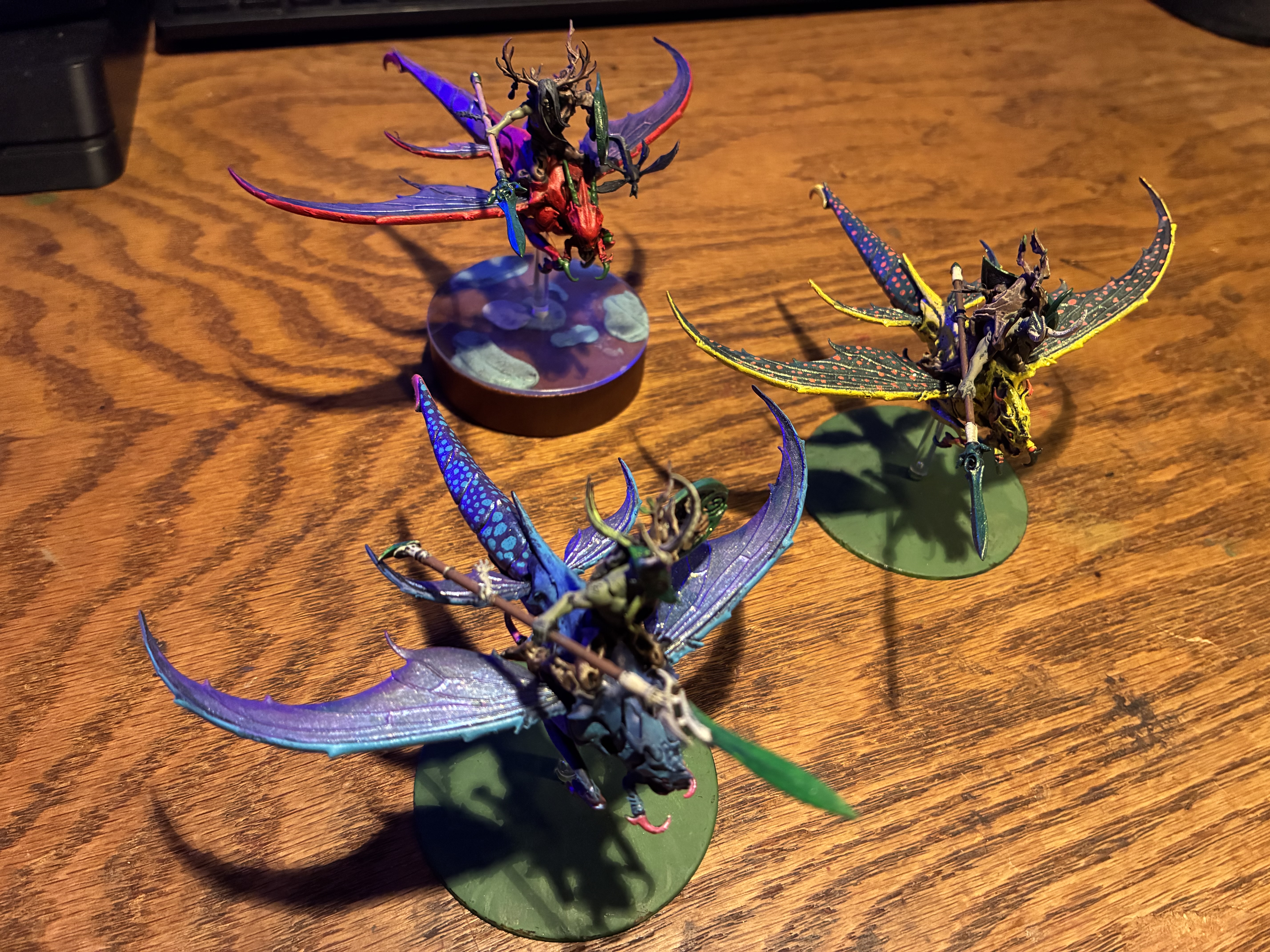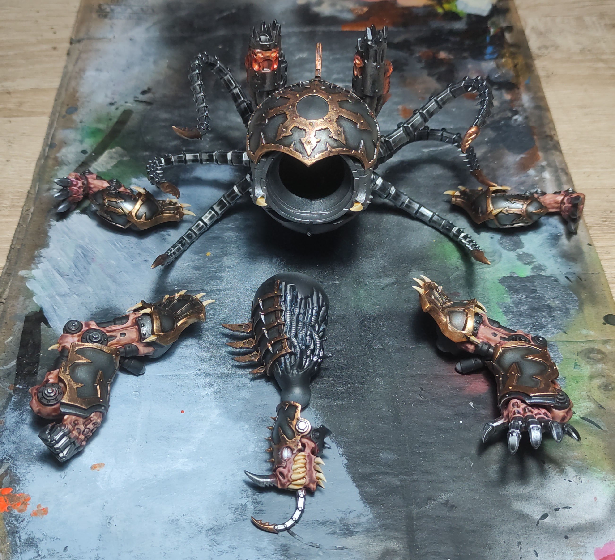 Moving on with this box now that my Skorpekhs are done. Quick WIP image of the Lokust Heavy Destroyers. Still gotta get some pink and red on the yellow