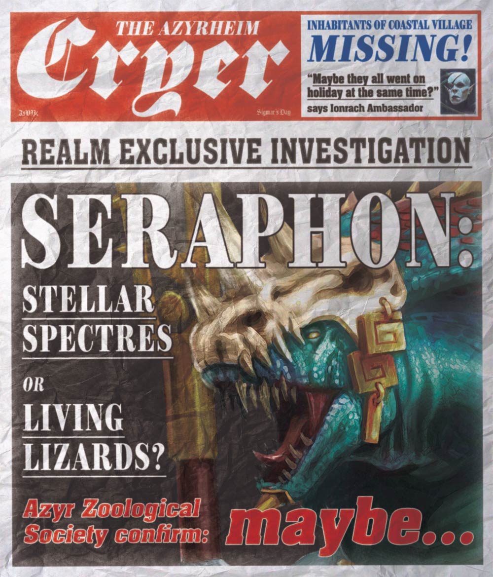 Alright, give me the seraphon rumors. My last hope for a fun book for my armies, and the faction closest to my heart.I've heard new temple guard and endless spells, which seems very plausible, but if we got any other rumors Im all ears.