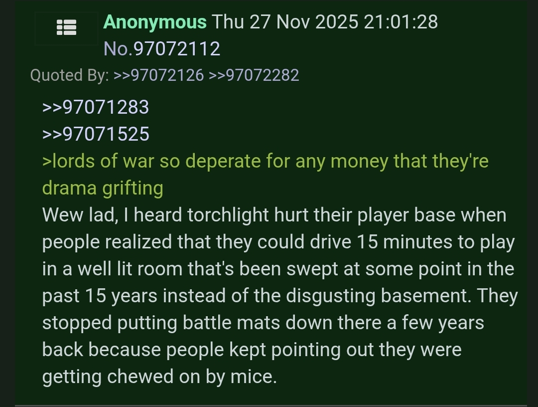 >>97605836>it’s realI have no reason to suspect they are lying, as they sell AoS. But if this is true then it’s very grim.