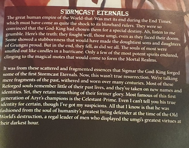 They retconned Celestant Prime from being a king originating from the Mortal Realms to being once the greatest defender of men during the End Times.Any idea who he was?