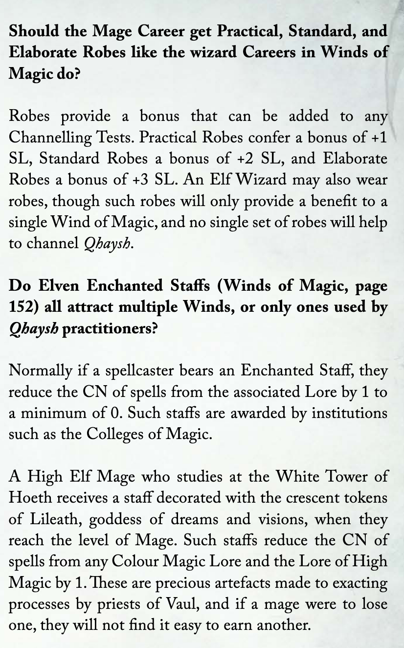 wfrp 4e question, so i just got winds of magic and see all the equipment that makes casting require slightly less investment to not shit out your guts but it's for collegiate wizards. Do high elves get an equivalent for high magic or does HEPG has some other equipment to help out high magic in ways other than making it overpowered thus making worth the cost?