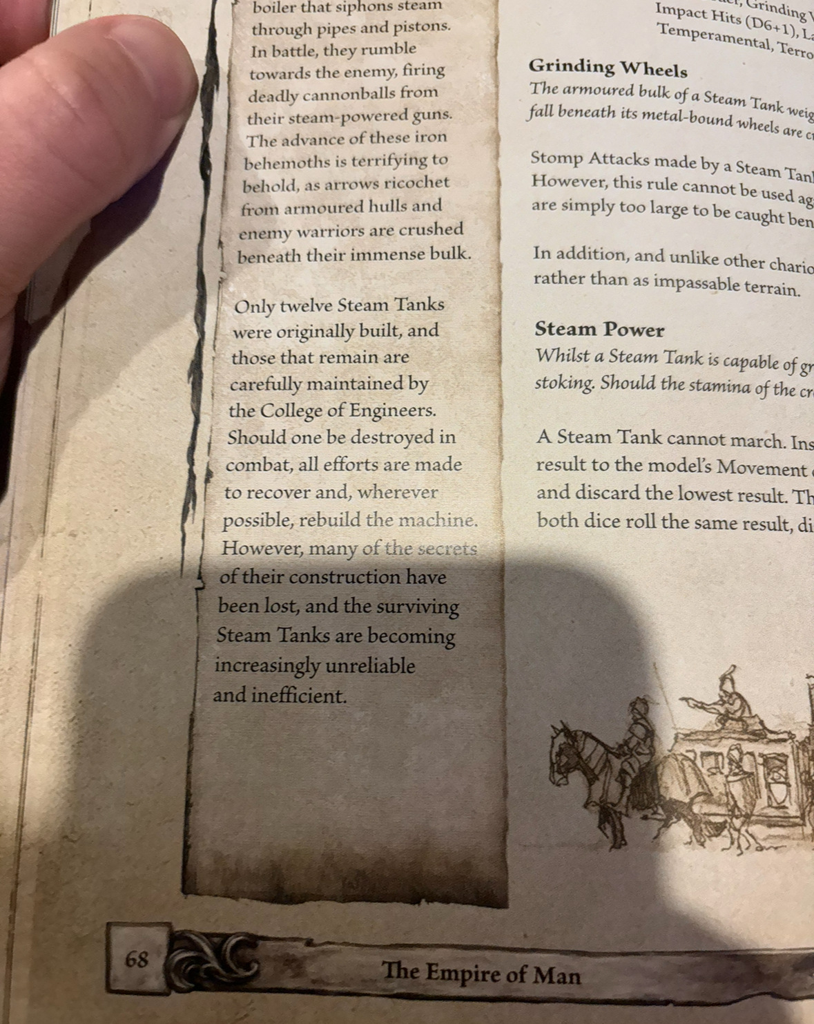 >>97604565The steamship was made aeons later- By the college of nuln. they could replicate the general steam power of the of the boiler but could not make it nearly so compressed - in essence the best they could do without the plans was a shitty copy. Which was regarded as a failure Fortunately they made it a big boat so some doofus in marienburg bankrolled it.
