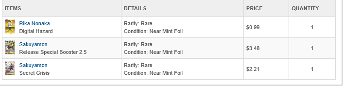 >>97623276Silly Jirenbrony, you're supposed to compile a list of all the cards you want and purchase them all together at a set time to minimize waiting time and delivery costs instead of impulse buying each desirable card you see individually