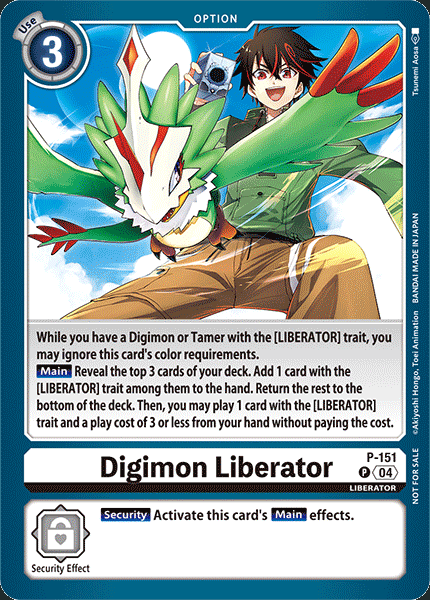 >try the digimon liberator card out in maquina deck>always draw liberator turn 1 and one to zero maquina so I have to pick and choose since I lose access to the white color if I evo over it so I cant lib turn 1>man I need another maquinamon, instead have liberator in handMan I cant tell if I like or hate this card.