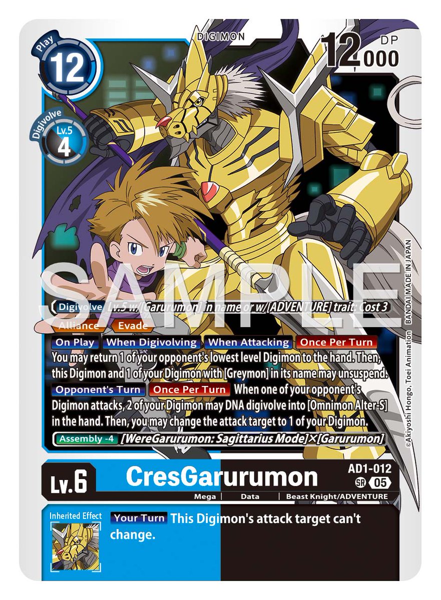 >>97637026>>97637034Im surprised to see these two when the SEC doesn't work with them, but there's actually still room for Warg and Melga for that and Alter-S for these (assuming he's White first).>>97637101Yeah unfortunately they already broke that ground in EX9. But also, these are kinda good on their own without Omega. Blitz let's you attack with Alliance even without DNAing first (like his DM Ace counterpart), but this time with Digimon protection and Piercing. Then CresGarurumon unsuspends both so Blitz can block while still being immune to effects.
