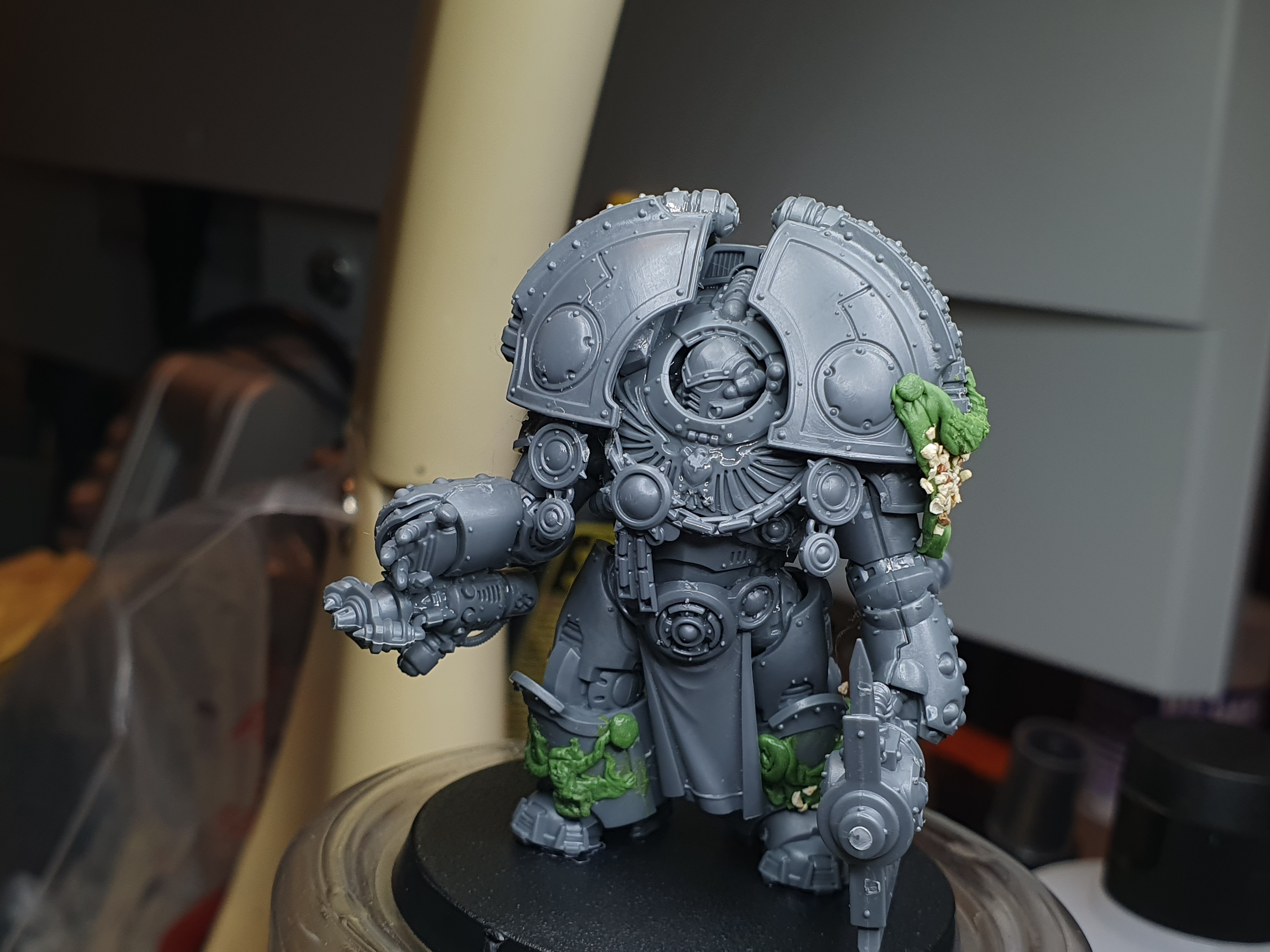 >>97611233Did a quick Iron farther in power armor for my IH (not finished painting or drilling of course) used a couple of different HQ models and slapped the bits together.