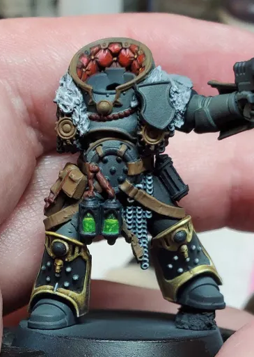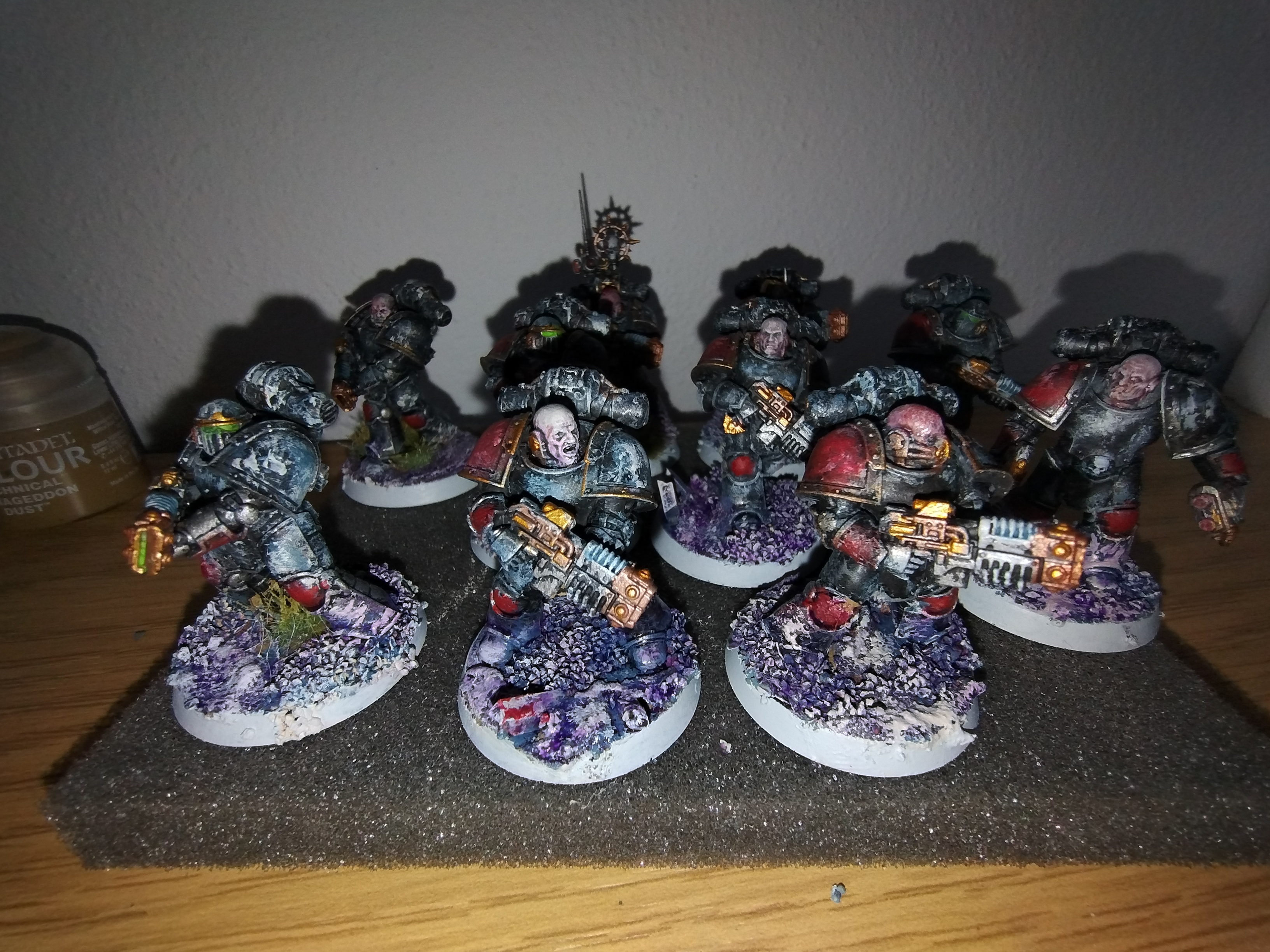 >>97612501Thanks, each little marine took an entire evening.>>97612529Yeah, just going to paint the IH with a really dark iron, black wash and then pick out notable parts with black, white and steel.