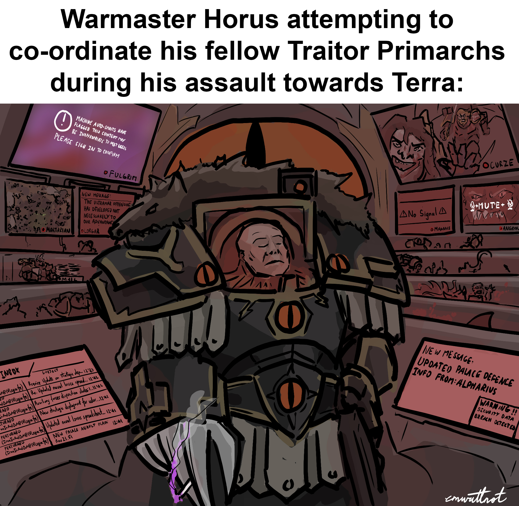 >think you're the Warmaster's top guy>he assigns you Mortarion who steals all your shit and fuses you to your suit and seals it from outsideThese guys had it rough