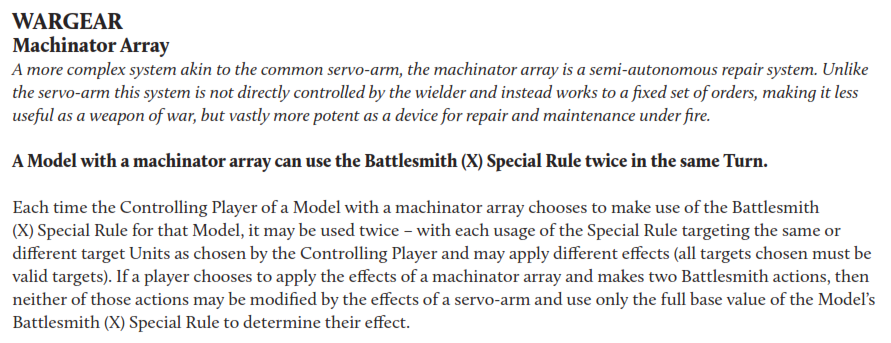 >>97620168You "can" but it severely reduces the effectiveness of your big automata and shit. And sure, you take a hit, but you have good armor and can heal your models. You want to be overcharging reactors and whatnot every chance you get because youre a low model count army and need to make the most out of those models and their powerful weapons. >>97620177Yea, its a pretty good design imo. It helps admech feel more distinct from marines.
