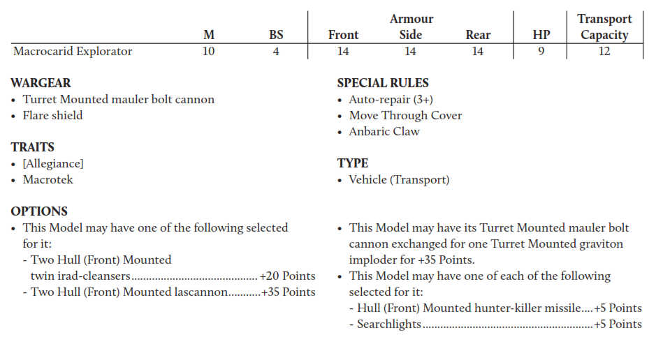>>97625437are you looking specifically to fuck up infentry? because i would look at the MagaeraLightening canon is Large blast, breaching and shred 5+ S7, AP3, D2 baseAlso come with a irad scourer poison 2+ phage, and panic 2.