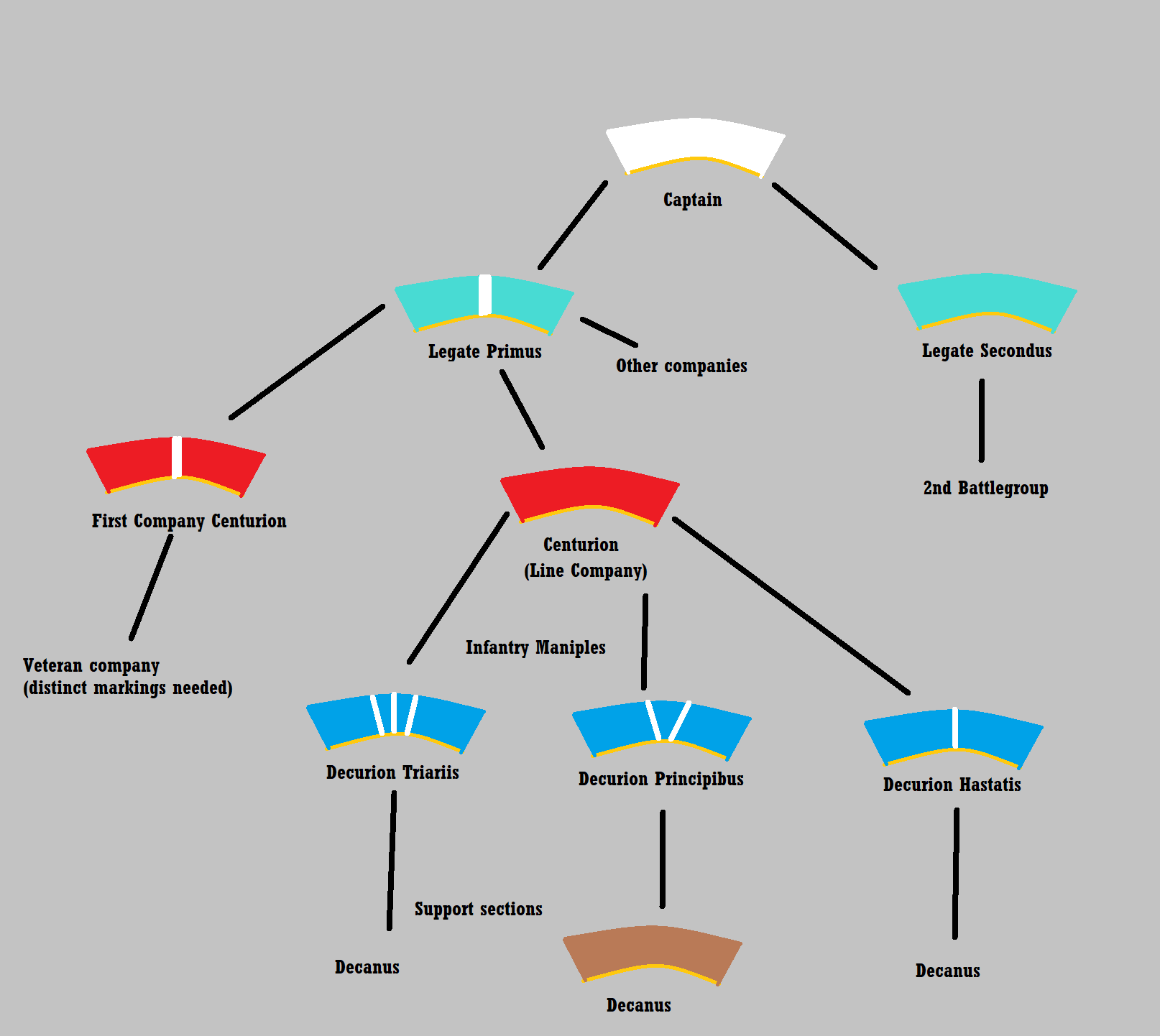 >>97622040Ah yes, the hastati, principes and triarii. Yeah there makes sense for a command rank between Praetor and Centurion when chapters aren't 1000 marines, innit? >Decanus below DecurionThat's just the sergeant