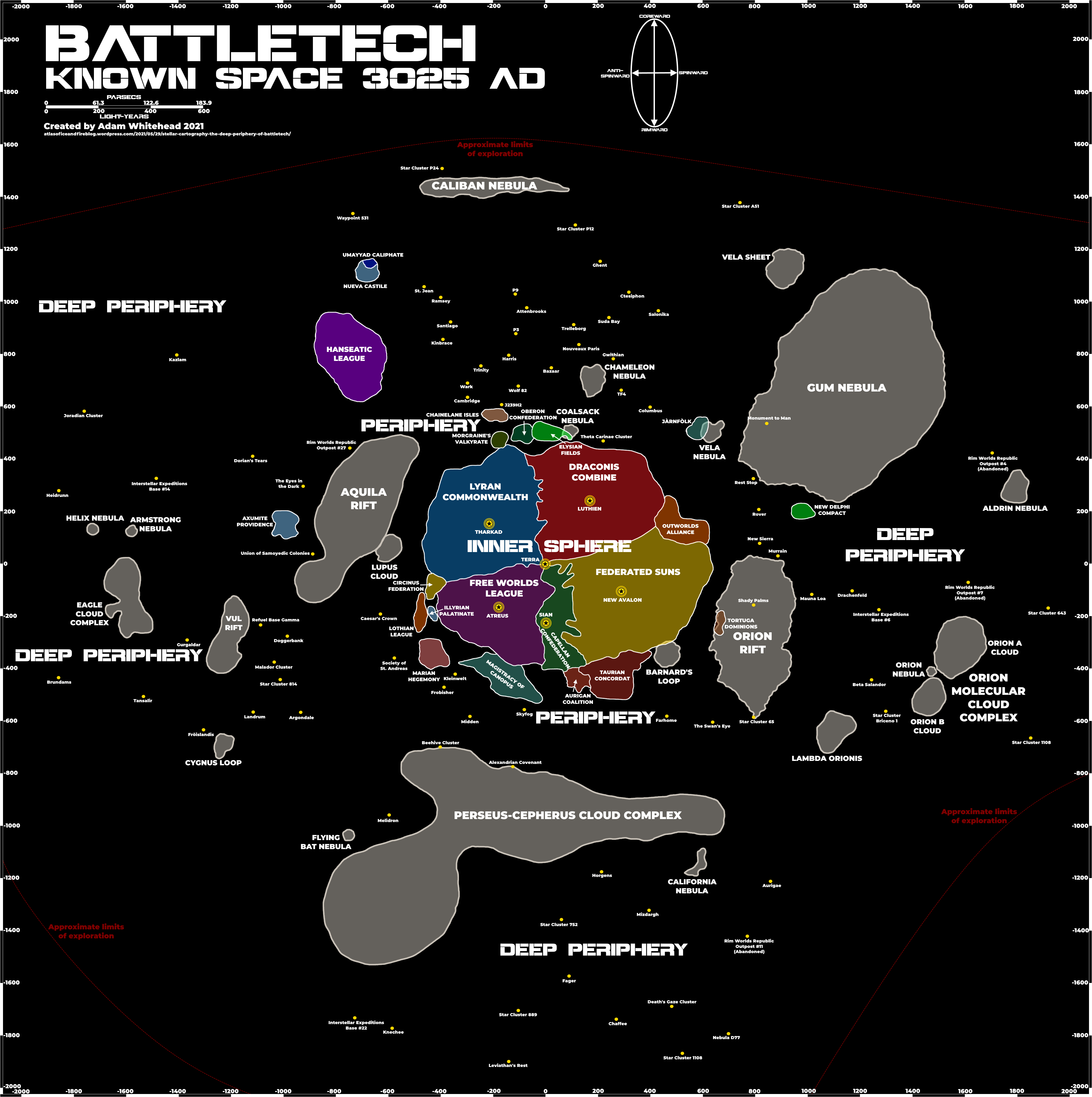 >>97614219The inner sphere knew fuckall about the clans in 3025. It's a 3025 from the PoV of the inner sphere map. Hence "approximate limit of exploration".