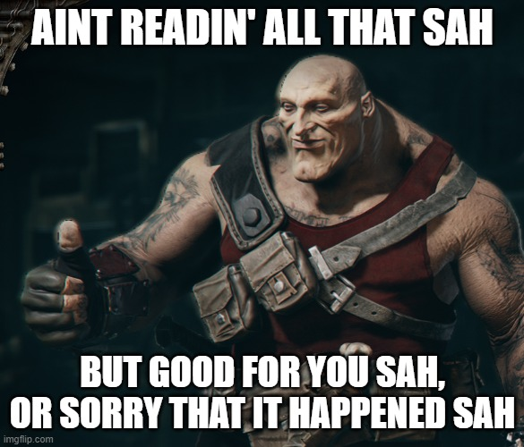 >>97617528I haven’t read the short stories, but I’ve read the actual books, and they’re all pretty well written. If you want some minor spoilers, I can list off the basic idea behind every book, so you know what you’re getting into. Fifteen Hours mostly focuses on how fucked up the Imperium is and how hopeless it is to be in the Imperial Guard, and so most of the book doesn’t have much in the way of actual combat (though the few times there is combat its very good). depressing and very grimdark overall Rebel Winter isn’t as grimdark and it’s “believable” in the sense that much of the conflict in the book is from simple logistical incompetence and violence that could theoretically happen in say the Russo-Ukraine war. It’s definitely way more combat focused than Fifteen Hours and it gives you a taste of all the different ork units that you might fight on the tabletop. The plot also gives you a sense of urgency and fear for the characters while Fifteen Hours just makes you feel defeatedDeathworld is about space MACV SOG fighting and surviving in a jungle, I’d say its the weakest one of the three, but I’m biased because after the first two books I thought the book was going to be about space MACV SOG fighting ork kommandos, but its definitely not that. The book is still pretty good overall though, and it has a lot of tension because much of the cast is made up of ticking time bombs on a planet that’s a ticking time bomb, so there was a lot of guessing on what was going to happen in the next page.