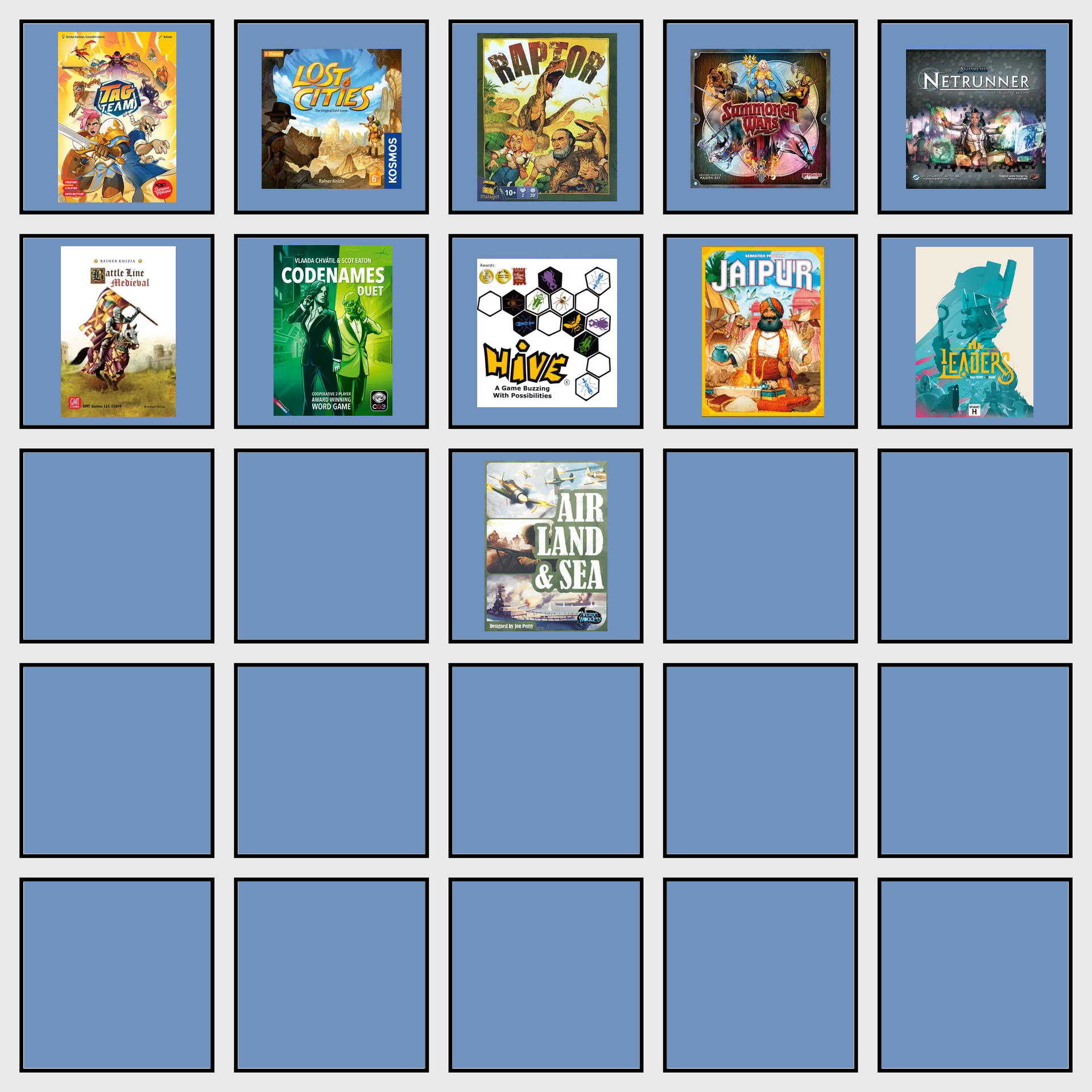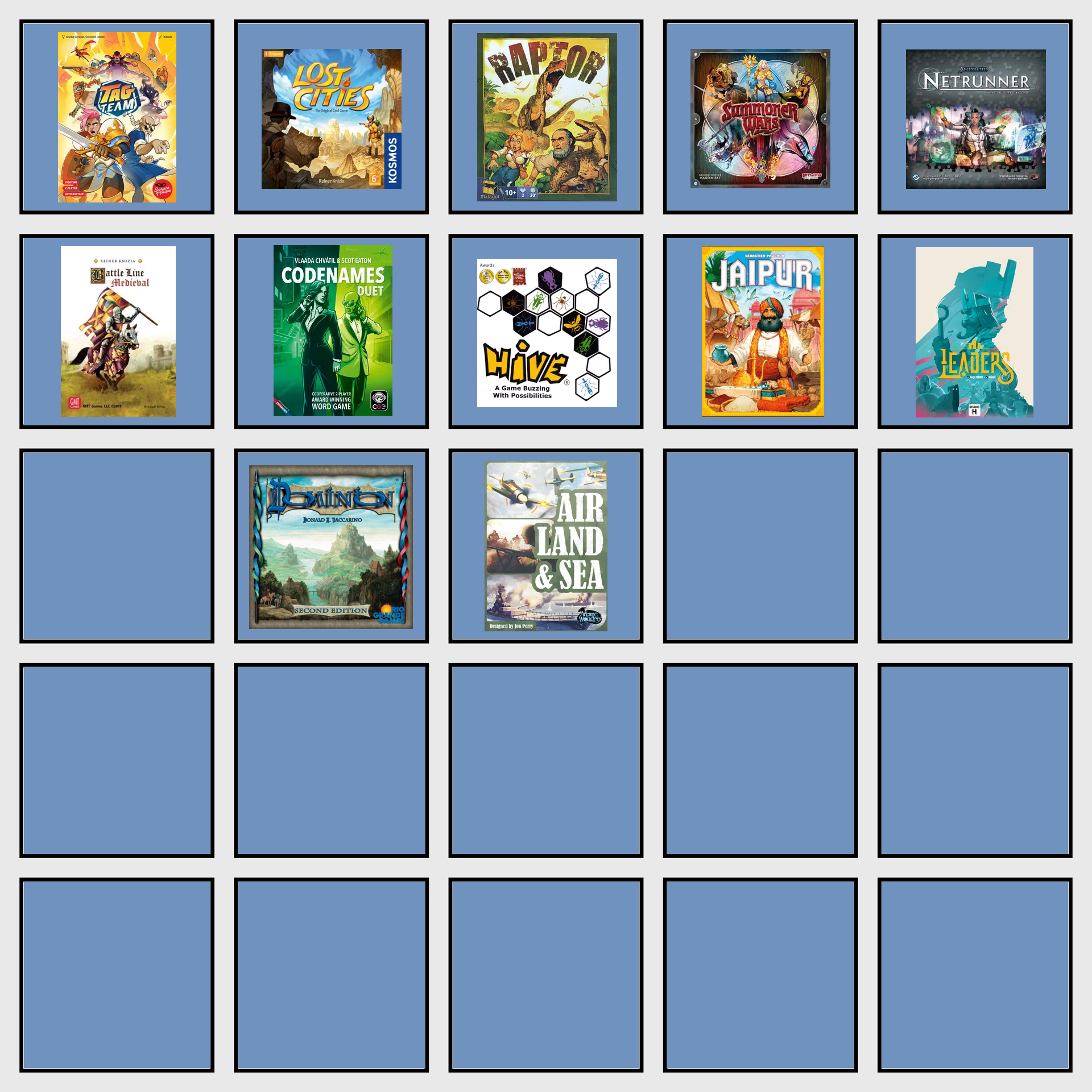 >>97622581>>what's your favorite mechanism?I am a sucker for drafting and lane competition. Also whatever you call the positioning dancing that goes on in games like Battlecon and Guards of Atlantis.>>what's your game of the year for 2025?I may have played maybe 5 games that came out last year, and only Tag Team and Compile repeatedly.While Tag Team was more addicting, I favour the push and pull tempo of Compile.>>which 2026 release are you most excited for?Uh...Old Kings Crown reprint? Maybe the Box of Xeno Flicks for Flick Fleet?I am not really in the know anymore of what is on the horizon.