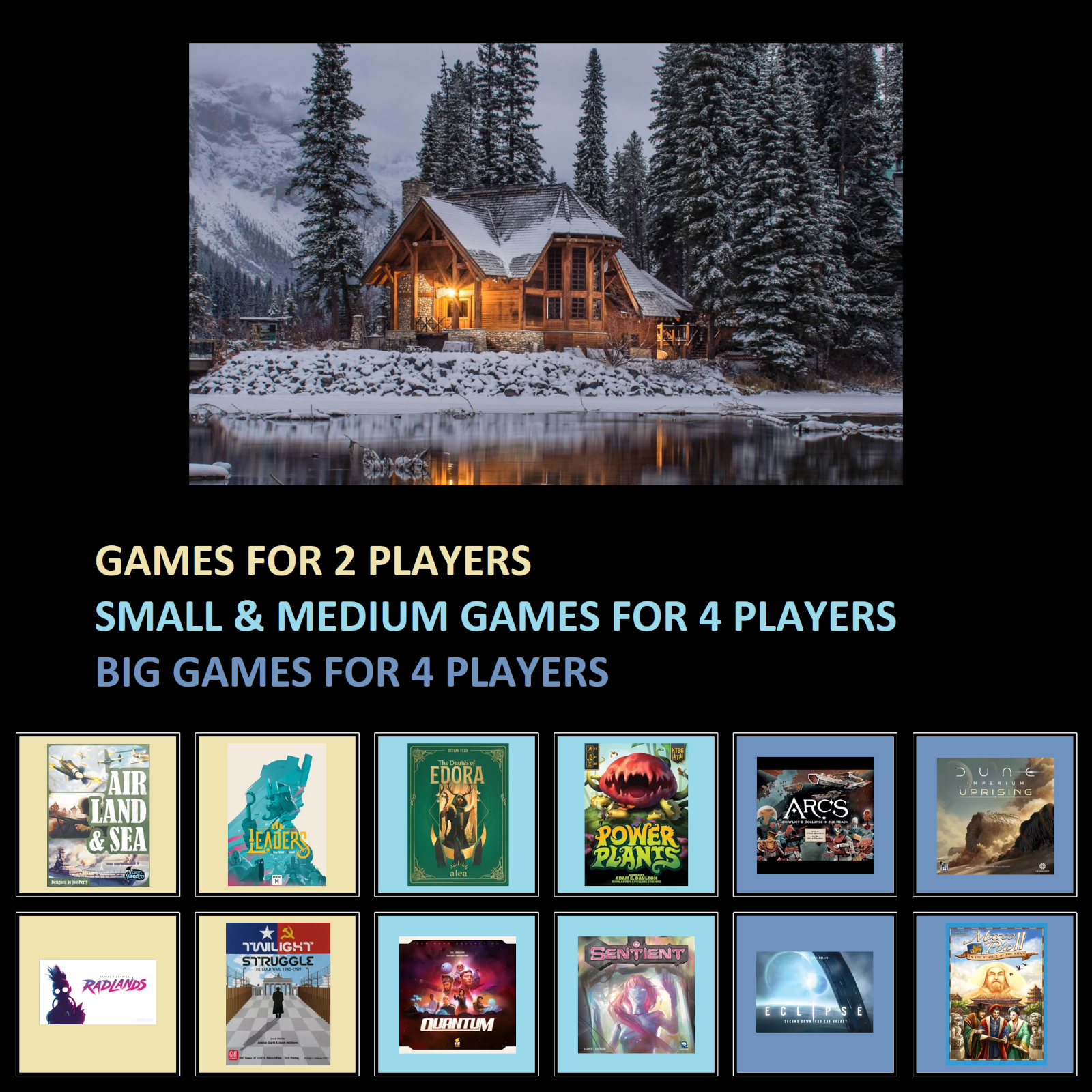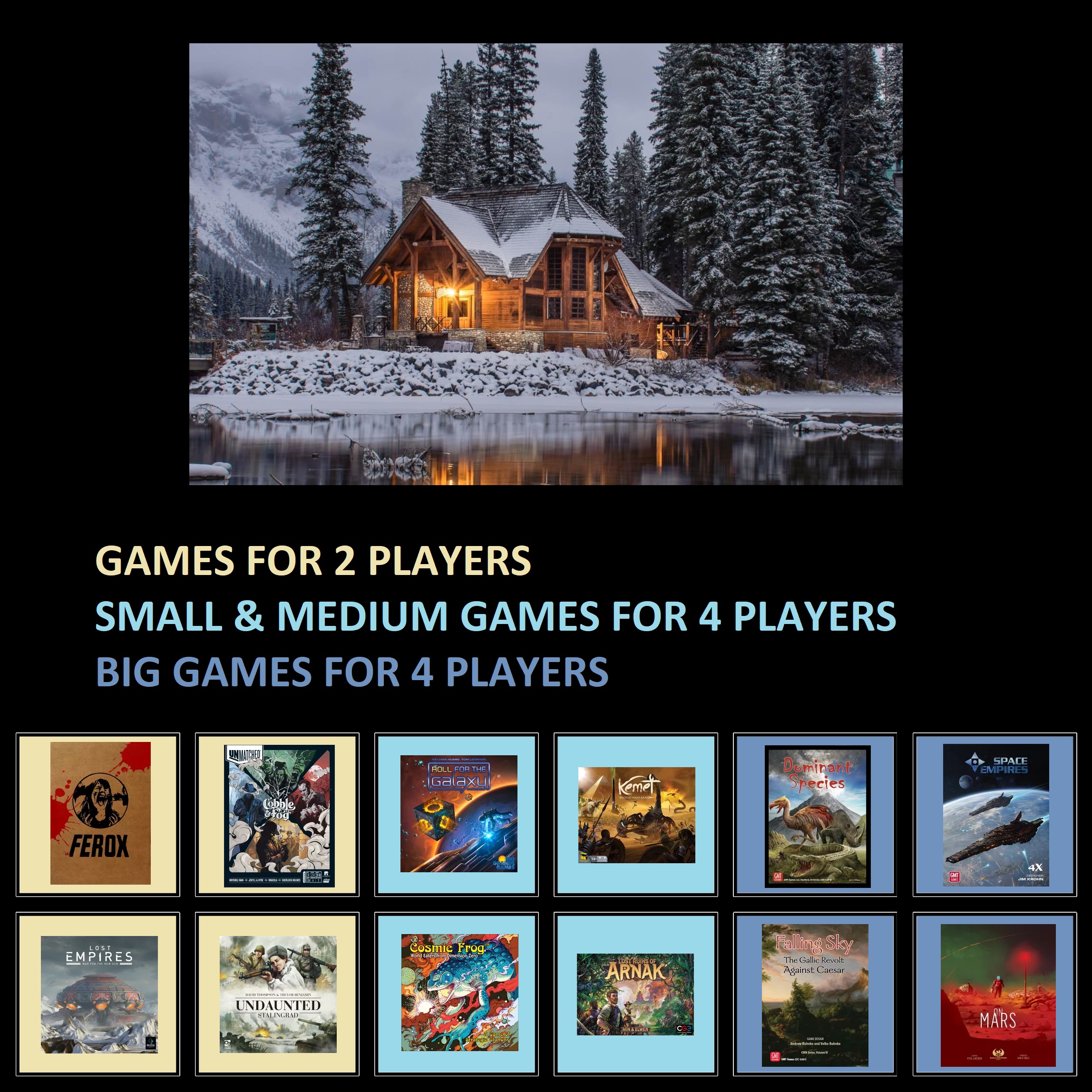 >>97622581>>what's your favorite mechanism?when i first started getting deep into board games, i was all about the mechanics. i wanted a game of every type, 1 that best exemplified it. i got into mechanics like social deduction and deckbuilding early on. i can't point to any mechanism i especially like right now - but i know which ones i don't like (drafting, engine building [solely because it's usually too long. i love Race for the Galaxy]). GeekGroup says my favorite mechanism is hand management and that's true i guess, i love holding some cards.>>what's your game of the year for 2025?only 1 i've played is Magical Athlete. i liked that a lot, so that. i'm not a cult of the new guy.>>which 2026 release are you most excited for?Knizia reprints: T&E and LOTR: The Confrontationreprint of Camp Grizzly