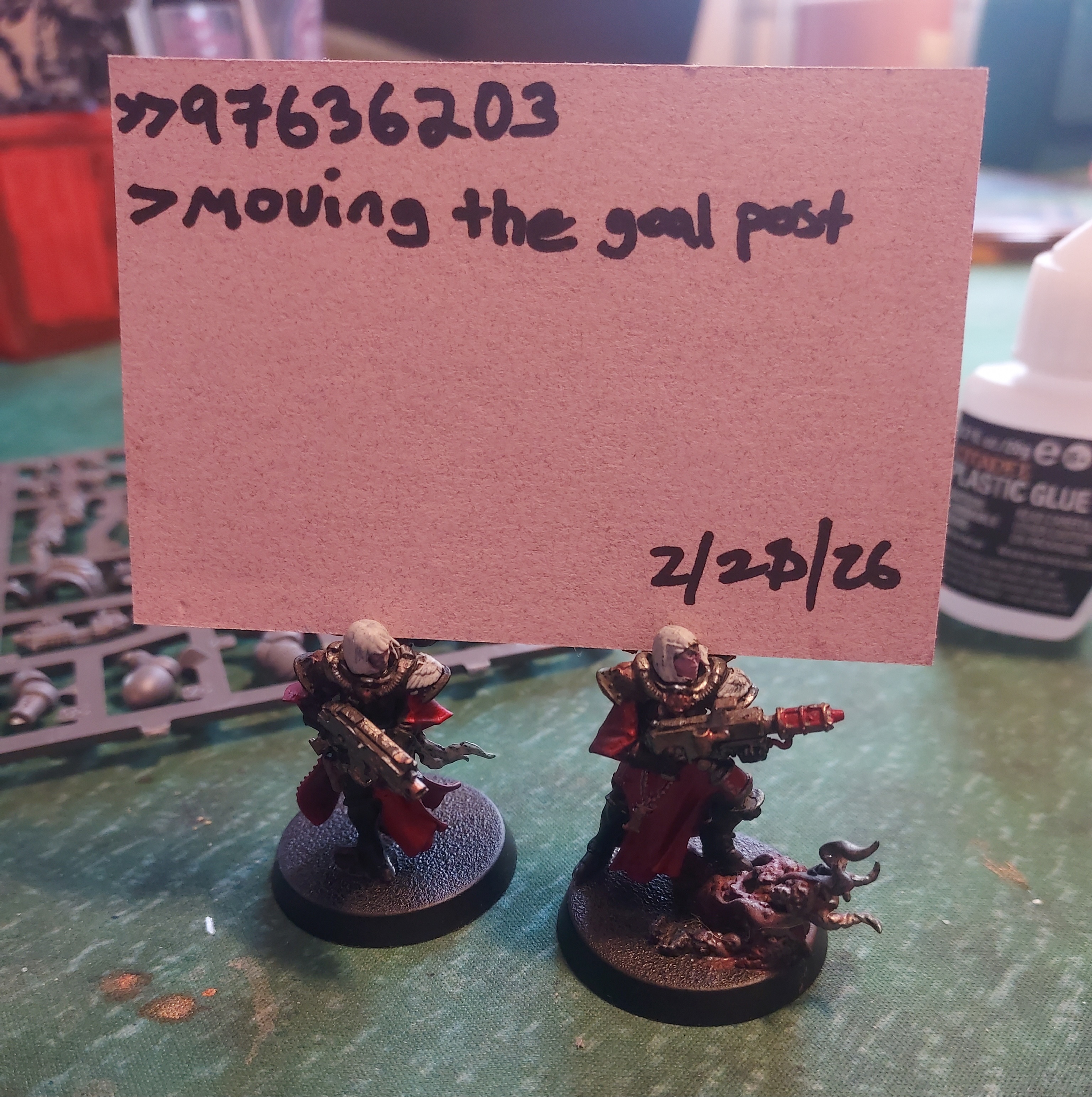 >>97637985Remember when you said you hadn't painted your hellblasters because you were so emotionally distraught over being banned from the collagelol