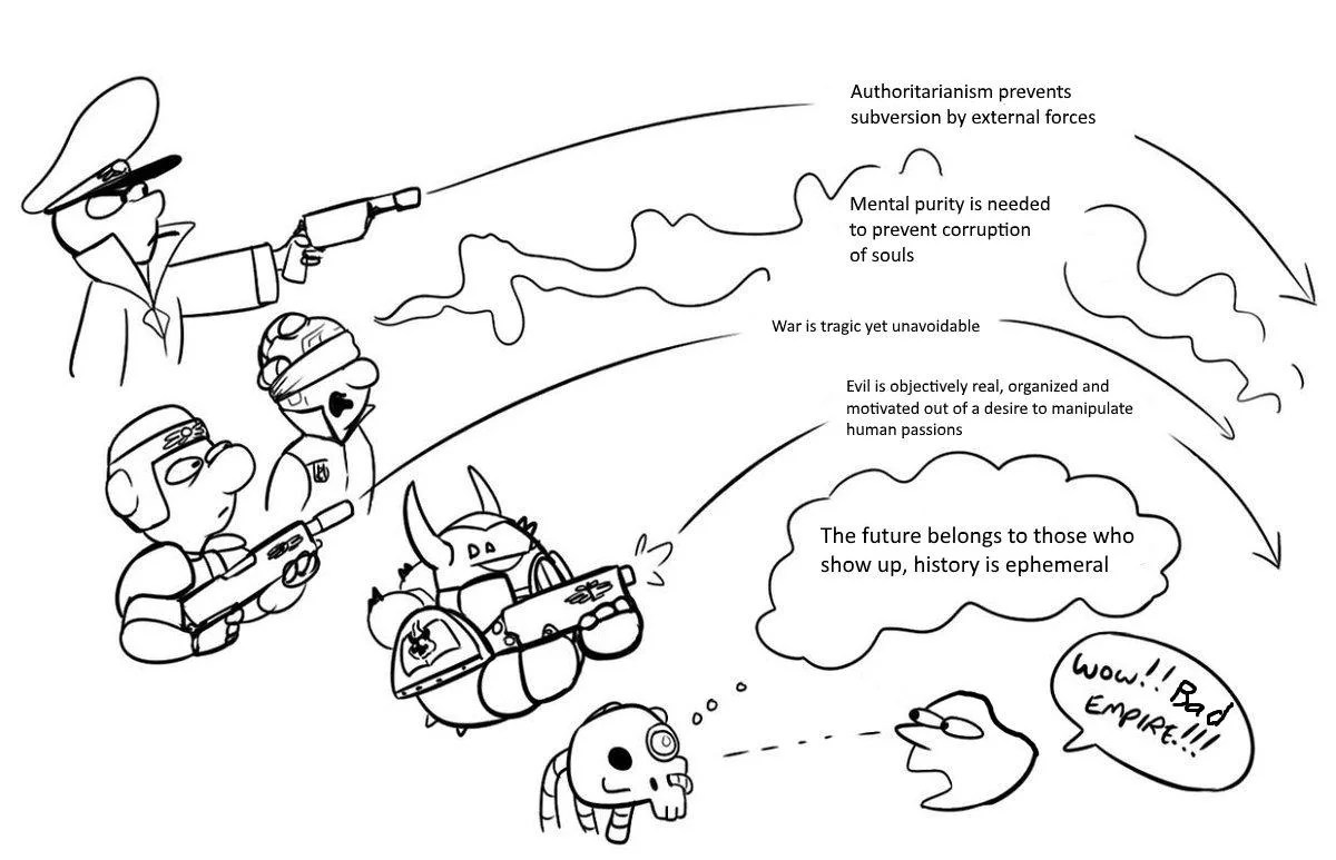 >>97638499Still think the best way to have done it is by writing it as either later historical recollections (similar to FW books) and/or from the perspective of nobodies working alongside the historical figures. That way we can handwave inconsistencies as the protagonist not knowing the full picture or their views of things being coloured by their personal biases. You can have two authors writing about the same thing and have them happen very differently, because we're experiencing them through unreliable narrators.>despite the fact that he absolutely abhors them and only wants them and their daemons to all dieNot to forget that in the past the Dark Gods recognized the Emperor as a threat and worked to thwart his plans. So why the two would work together at all is a mystery, beyond "what if the good guy is actually le bad?"