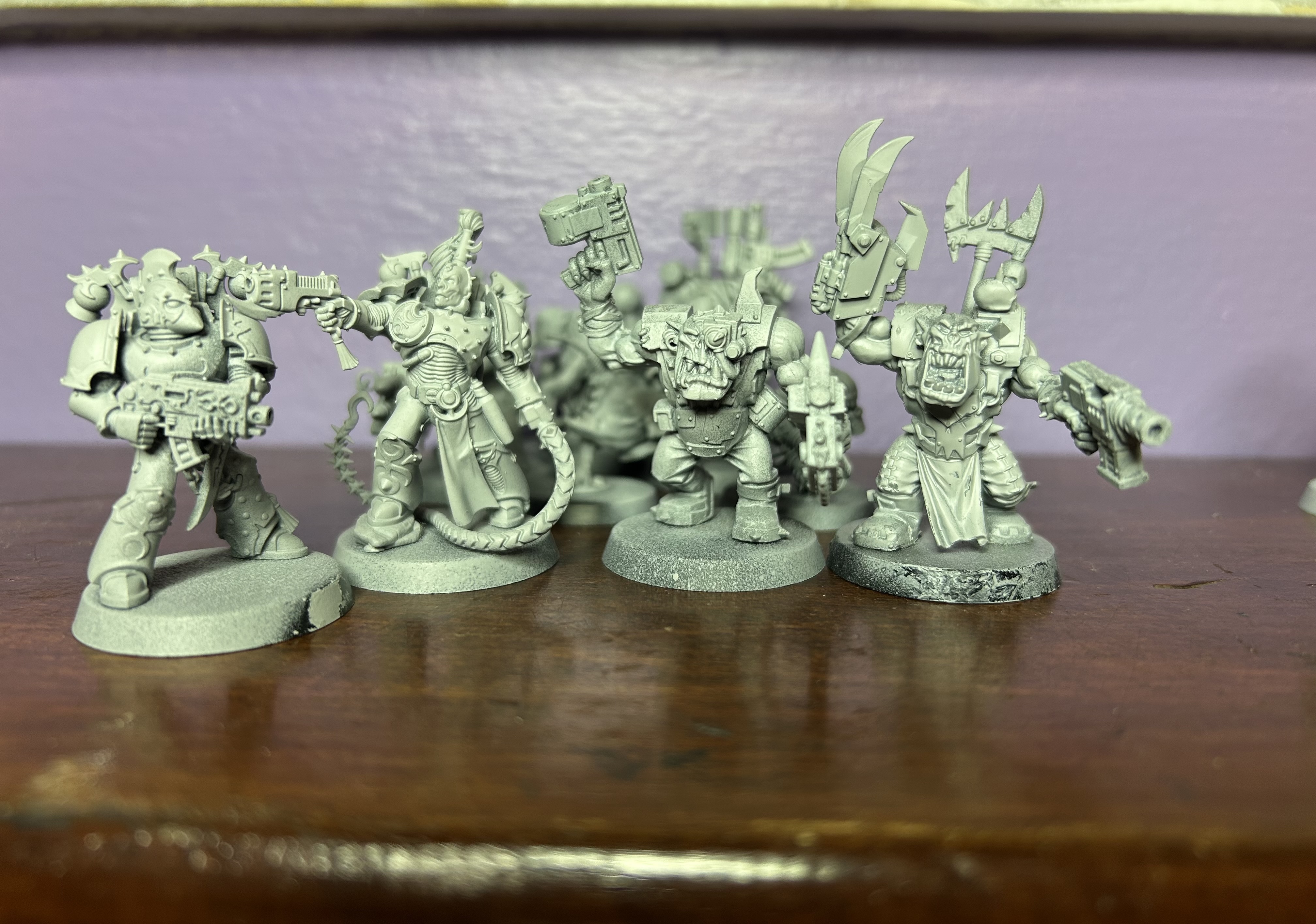 >most of it is put together, a few primed models and one almost (badly) painted mini