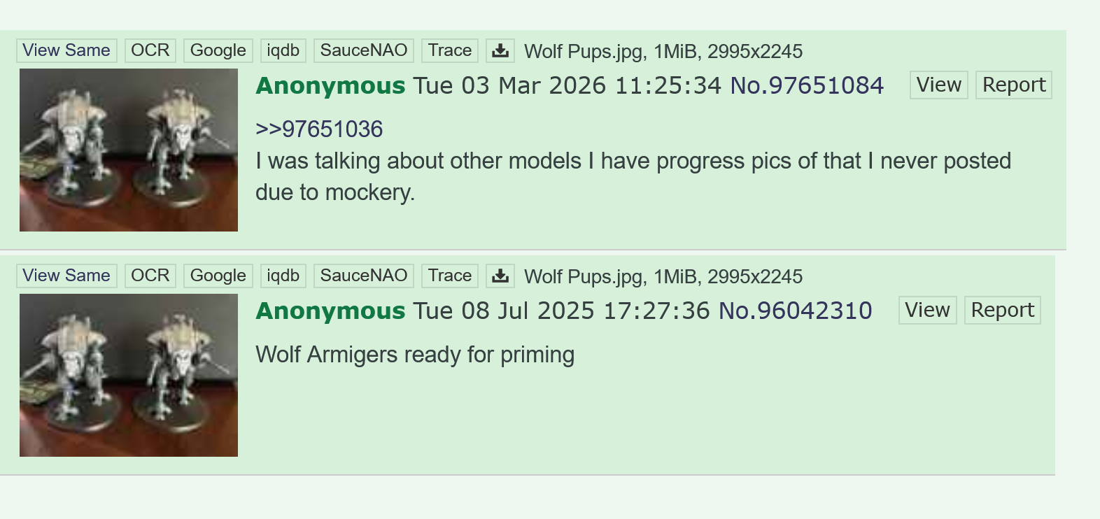 It's either a shitposter pretending to be him or he's lazy and hasn't done any work on his minis lately and so has to use old pics. We'll never know for sure ig