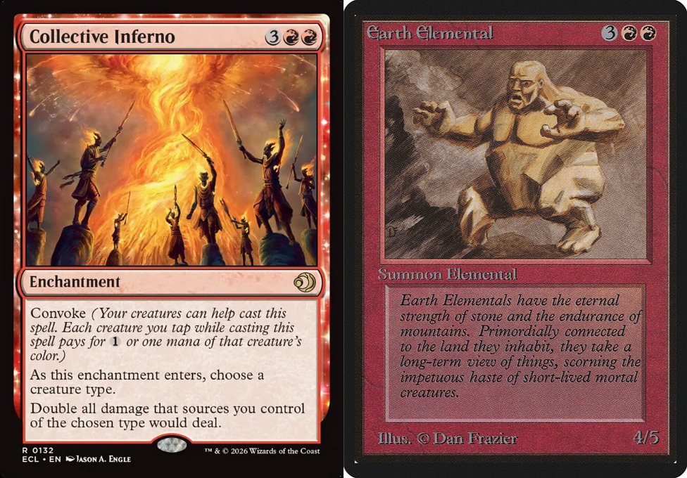 >>97661130Your card-examples illustrates exactly what I mean.The Earth Elemental looks like a crude sketch in your eyes but I view it more as a concept art, an imagination of the creature you're summoning, a basic form to help you fantasize about what the thing is and what it does. It's a collossal clump of stone. Heavy and slow. And to me it's only a bonus that Dan Frazier channeled his inner Picasso to use cubismic shapes to draw earth as an elemental.Now, perhaps Jason put more effort in his piece, Collective Inferno is rather beautifully painted with the whirl of fire channeled by the elementals. It has a solid composition with the dark figures in contrast to the bright flame (it kinda reminds me of Disintegrate, Incinerate and Wall of Lava). Yet Collective Inferno is only what it is. It doesn't really invoke any imagination in me. I don't really care about the figures, I'm not that passionate to know who they are or why they're gathering, what they're really doing, and how the card ties itself with the rest of the cards (I honestly don't know where to read the lore anymore, not that I care that much about lorwyn). This card is just a game piece. And I've even played it a few times as I enjoy playing limited but funnily enough I've only casted it to make my goblins do more damage. I haven't really used it for elementals yet as it doesn't fit that strategy that well.