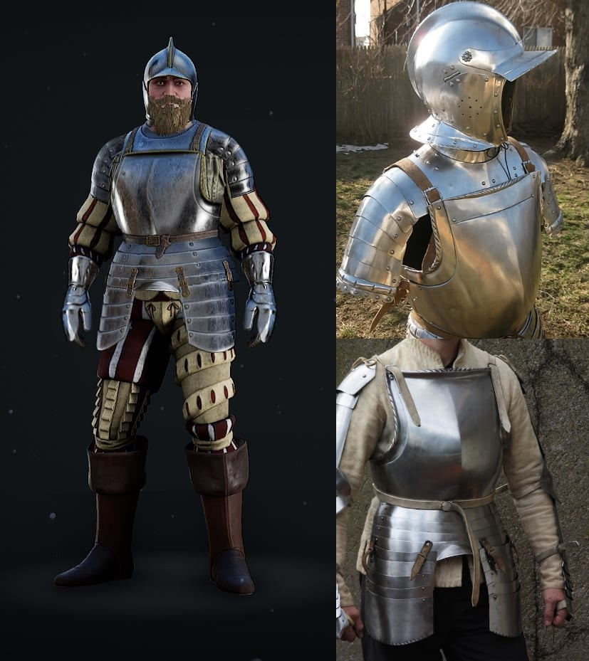 No. Foot infantry plate armor had less leg armor and typically an open face helmet to help with movement and visibility.