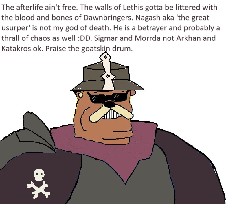 >>97680873So when Nagash wins, is he planning on just removing all sentience from the OBR and vamps, etc and then just kinda sitting around for eternity doing nothing? Do you think secretly in the back of his mind he wants to have his own little civilization he personally runs and just gives people free will to keep things less boring?