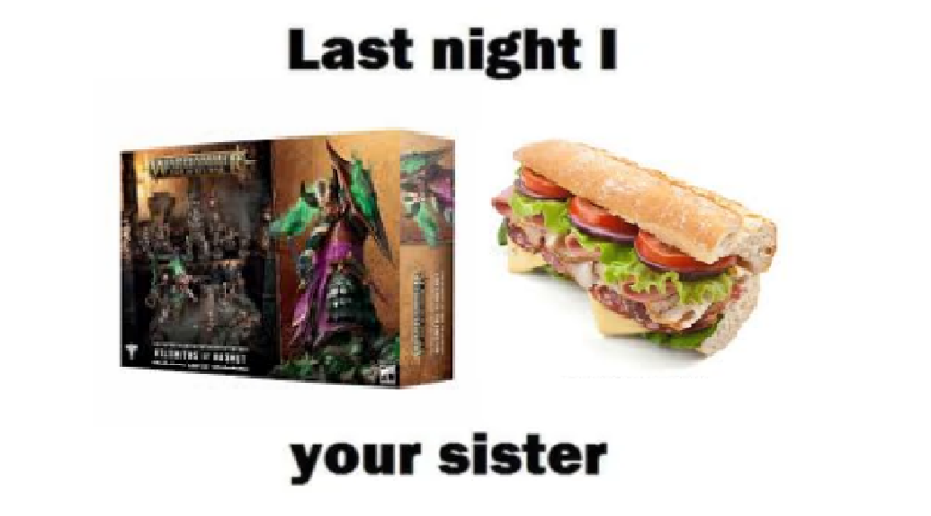 I had to see this, so you will too edition>Previously, in the Mortal Realms>>97652901 >Official AoS website:https://www.ageofsigmar.com>Downloads, Rules Errata, and FAQs:https://www.warhammer-community.com/warhammer-age-of-sigmar-downloads/>Toolshttps://runebrush.pa-sy.com/warscroll/>Anvil of Apotheosis hero creator:https://aosg.github.io/https://sigdex.io/>Thread order:Post funny/weird conversions