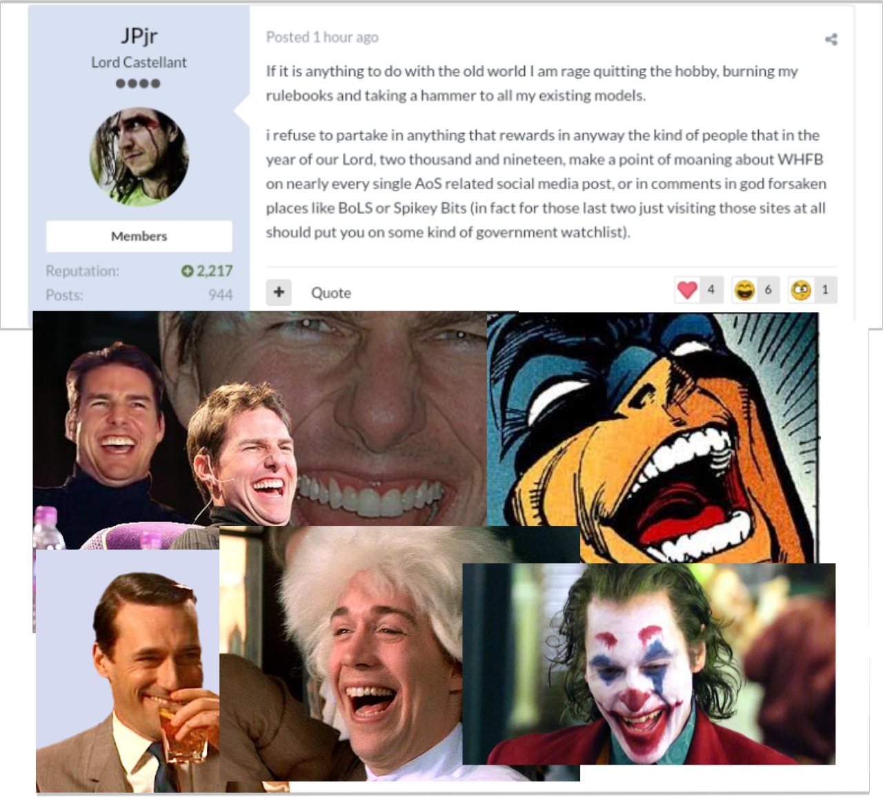 >>97679505>No, it doesn't have a repository because it was constantly reported by disgruntled Fantasy players.That's a huge claim considering that general used to have crosslinks with AoS sub-reddit where even discussing GW prices were bannable.>>97679511>zero mentions of TOW opr WHFB>damn bruh you got any space left your head or is it all occupied by aosSomeone a bit insecure.