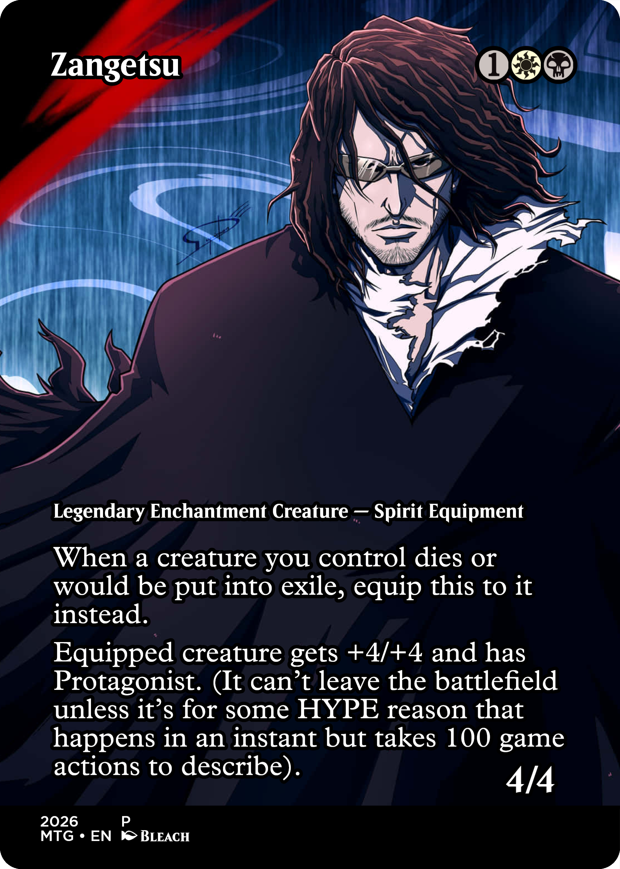 >>97678270If you wanted to be true to the lore of Bleach, nothing. One can not use another's You could make an asauchi equipment that does something that buffs the legendary creature that it is equipping to and levels up to Shikai and Bankai.I don't know how to mechanically do that, but if you wanted to be true to the lore that's how it would have to work.zaraki is the only person to take a Zanpakutō from another person, but that person was already dead so it turned back into an asauchi
