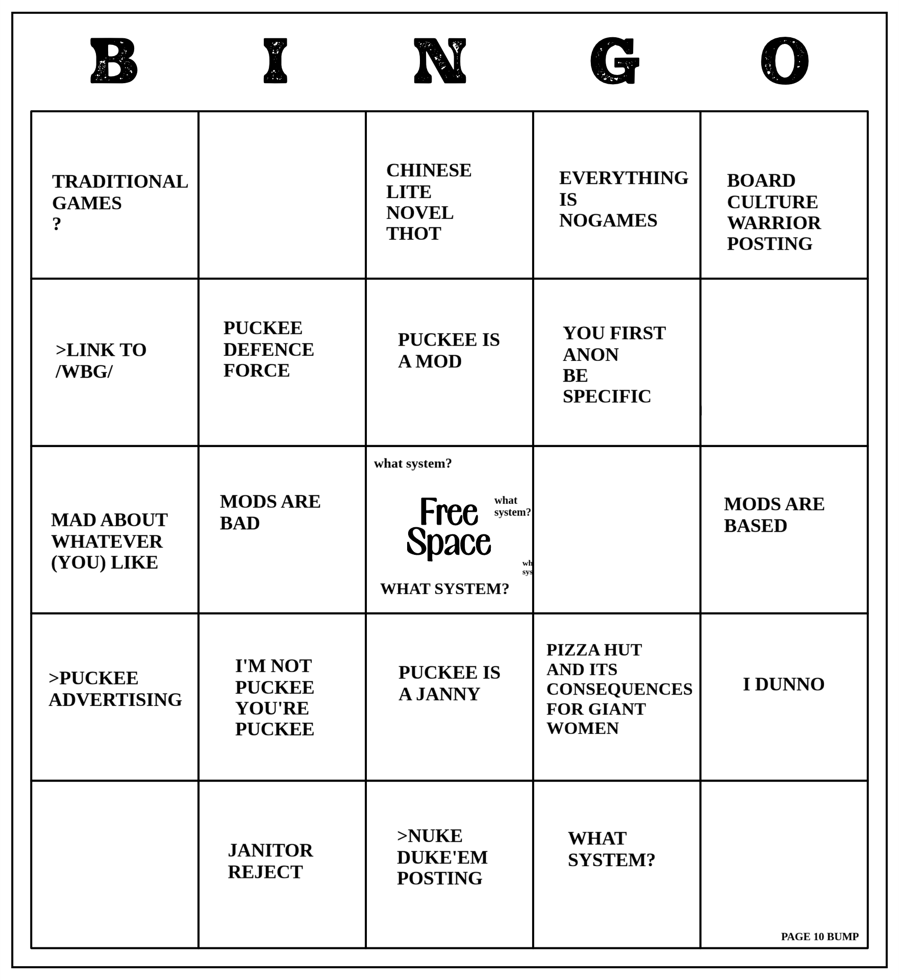 >>97684133Still nothing creative enough to fill in the last few squares. Check the archive to see how long its been if you are so inclined.