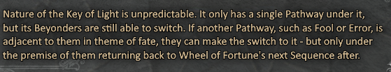 >>97685080>What does "To Eternal darkness" mean for "Above The Sequence" for Warrior pathway?The Eternal Darkness is the Great Old One who rules/ruled that Pathway. If (you) go far enough, (you) can become the next Eternal Darkness.Longer answer:It goes back to the cosmology of the setting. The Original Creator ruled/was the orthodox Pathways. But that meant he/she/it was being pulled in countless mutually exclusive directions, and was -apparently - quite insane. Male and female, up and down, creation and destruction . . .To stabilize themselves, the Original Creator launched a convoluted plot to purge the mutual exclusive Pathways from their soul. First by spinning off three fragments of their soul as Outer Gods, and then fracturing what was left into nine Great Old Ones. The Eternal Darkness is one of those nine, along with God Almighty, the Demon of Knowledge, the Lord of Mysteries . . . Each Great Old One controlled/embodied one or more orthodox Pathways.Then, apparently as part of the Original Creator's plan, the nine Great Old Ones fractured into the the individual Pathways.(You), as a Beyonder, can consolidate the divine fragments, and reverse the process. First becoming the god of a Pathway, then going "Above the Sequence", and absorbing the related Pathways to become a new Great Old One.In this case, it would go from human to godhood as the new Twilight Giant, then absorbing the Death and Darkness Pathways to go Above the Sequence to become the next Great Old One of the Eternal Darkness.