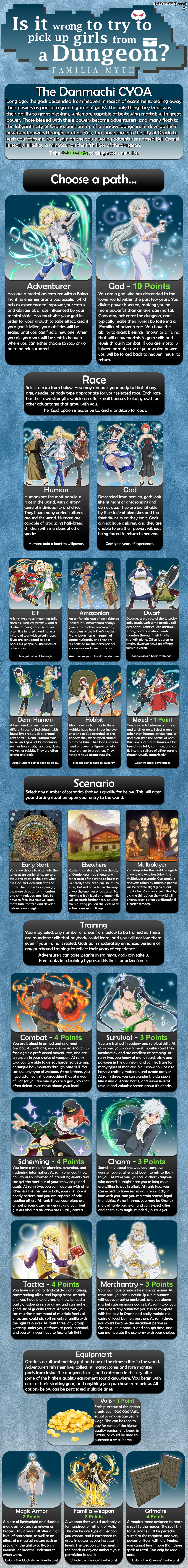 >>97684791Strongest Nascent Outer Diety build IMOSequence 9: Savant (you're not going to be in this sequence for long and just perfect recall of LOTM is overpowered by itself)Sequence 8: Student of Rationalization (increased intelligence to use future abilities is probably the best pick for a sequence you won't stay long at)Sequence 7: Lucky One (for boosting luck to combine with sequence 6 choice, Vampire for 300 extra years of life is also pretty good choice)Sequence 6: Devil (strongest sequence 6 by far since you can literally always sense if anyone's making plans to harm you with the only weakness of meeting random enemies by bad luck like what happened in LOTM)Sequence 5: Shepherd (obvious choice, strongest sequence 5 by far, no contest)Sequence 4: Mysticologist (very strong sequence 4 if you have modern day memories to abuse like Klein did with Catelya, otherwise Imperative Mage or Earl of the Fallen have ridiculously powerful combos as well)Sequence 3: War Bishop (Ability sharing with team + Sherpherd means you can give your teammates nearly any conceivable ability with the intelligence boost of Student of Rationalization to pick the right abilities for the right situations) or Scholar of Yore (broken ass sequence 3 that let Klein beat angels and slay a god, also combos well with Shepherd)Sequence 2: Balancer (force everyone into 1v1 fights combined with War Bishop + Shepherd so your group always gets advantageous matchups)Too bad CYOA doesn't let you go past sequence 2. Sequence 9-7 you play it super safe and from sequence 6 onwards you're nigh unkillable. Killing a traveler should be #1 priority once you reach shepherd for the pseudo teleportation. Building a team for War Bishop is ridicilously easy because you can give out boons as a nascent outer god. Thoughts?