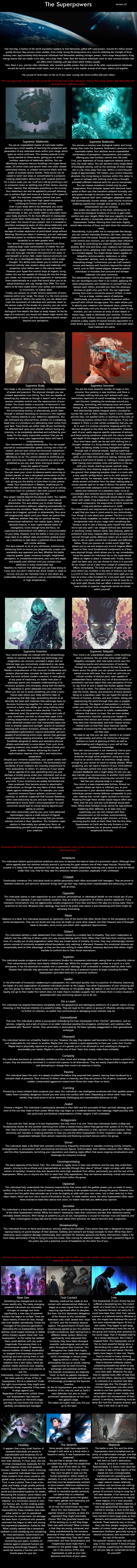 >>97689438>ignore status, location, personal history, and any other options related to the world described hereno secret organizations in modern day. invalid build