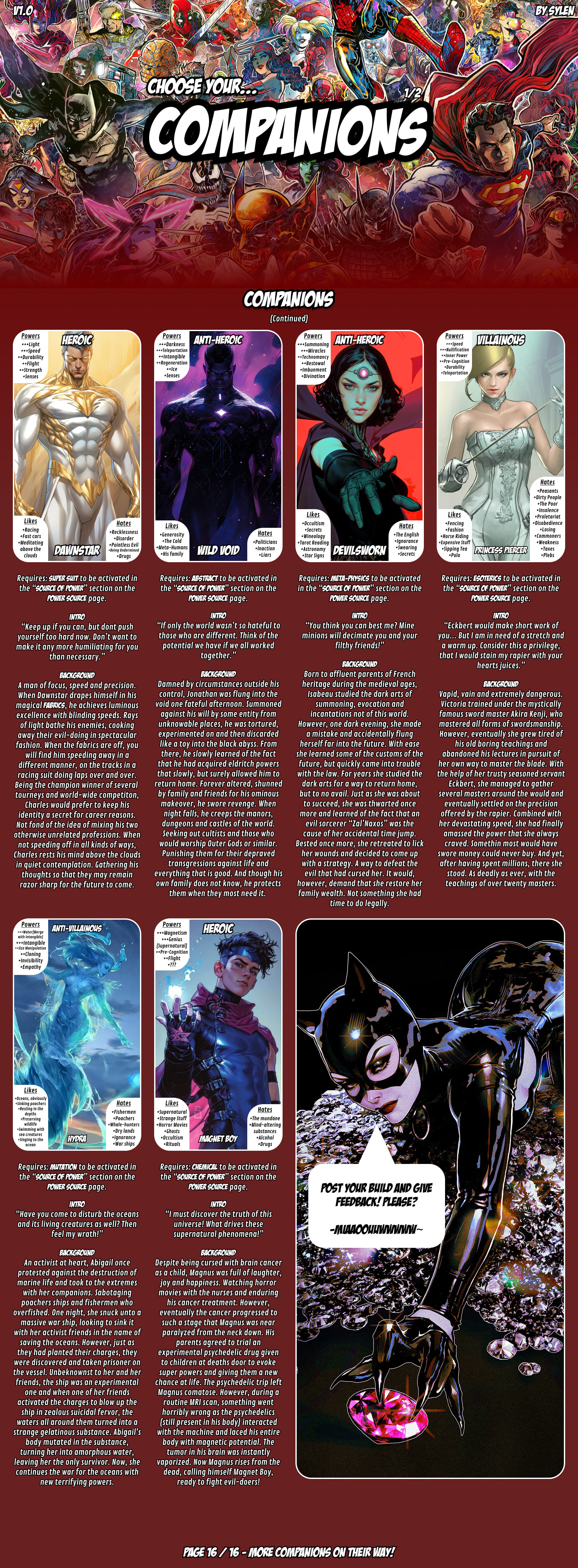 >>97684791So do you only get 1 Partner?>>97690249To be fair it is quite a lot to get through and that's even before factoring in the time it takes to actually make the build with all the tweaking and refining most Anon's seem to want to do.Even still the cyoa and setting of it are being discussed.If anything I would argue the thread slowing down is in response to people focusing on the CYOA.