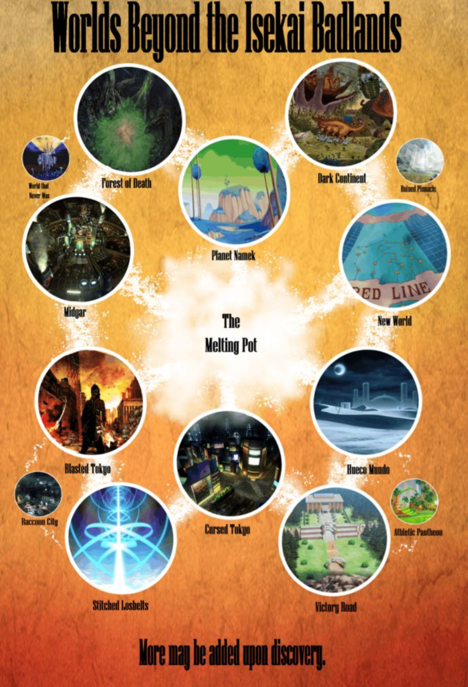 Isekai Tournamenthttps://imgchest.com/p/xny86ajm24b>Cobalthttps://desuarchive.org/tg/post/97581231>Sagittarius Rikuhttps://desuarchive.org/tg/post/97595535https://rentry.co/gmn94tb3>Saku Kirikamihttps://desuarchive.org/tg/post/97595796>Eugene Canseliet (under revision)https://desuarchive.org/tg/post/97587070>Lucas Walkerhttps://desuarchive.org/tg/post/97587439>Harry Higurumahttps://desuarchive.org/tg/post/97587677>Sixhttps://desuarchive.org/tg/post/97607788>Llewellyn Odyalutaihttps://rentry.org/IsekinoTourneyLlOd>Writefags>Harry's Intro:https://rentry.org/er5d7kbm>Cobalt Introhttps://rentry.org/8z873wz2>Areas and Connections (Updated, still needs one further update)https://rentry.org/v9ioyuz8>Journalhttps://rentry.org/vahx9iv5>Datahttps://rentry.org/IsekinoTourney2026BuildTableRules so far:>Power tier is Heavyweight>Mode is Bounty/Negotiate to encourage PvE events but PvP (other tournament player) is still possible as killing someone grants you all of their points>Builds are 'Team X' by default, with no limit on power type or members>All team members can get a wish>The 'Team Handicap' exists; as the amount of team members you have is higher, your growth is slowed>You can sever from your team at any moment, gaining the maximum growth multiplier>You can't become a team member again after severing yourself from your team>Setting is a multiversal arena with many sectors with their own enemies based on different fictional works, each with unique bounties (Hueco Mundo sector with Hollows, Namek sector with Frieza Force soldiers)>Hunt bounties for points, and then you can use the points to purchase goodies, such as furthering your knowledge in a power system>Teammembers spawn away from each other, and have to group up