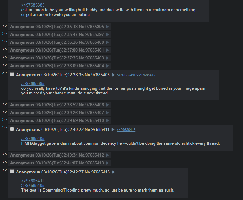>>97685411>>97685405The goal is Spamming/Flooding pretty much, so just be sure to mark them as such.