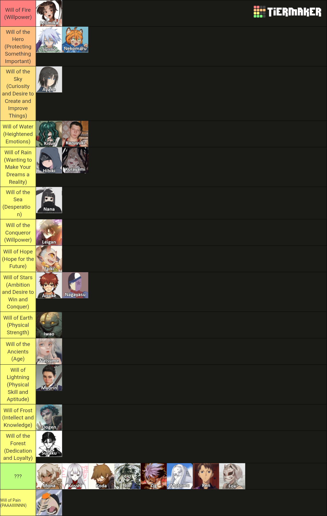If only we had the tiermaker... Someone who isn't me could make a clear list of everyone's wills...