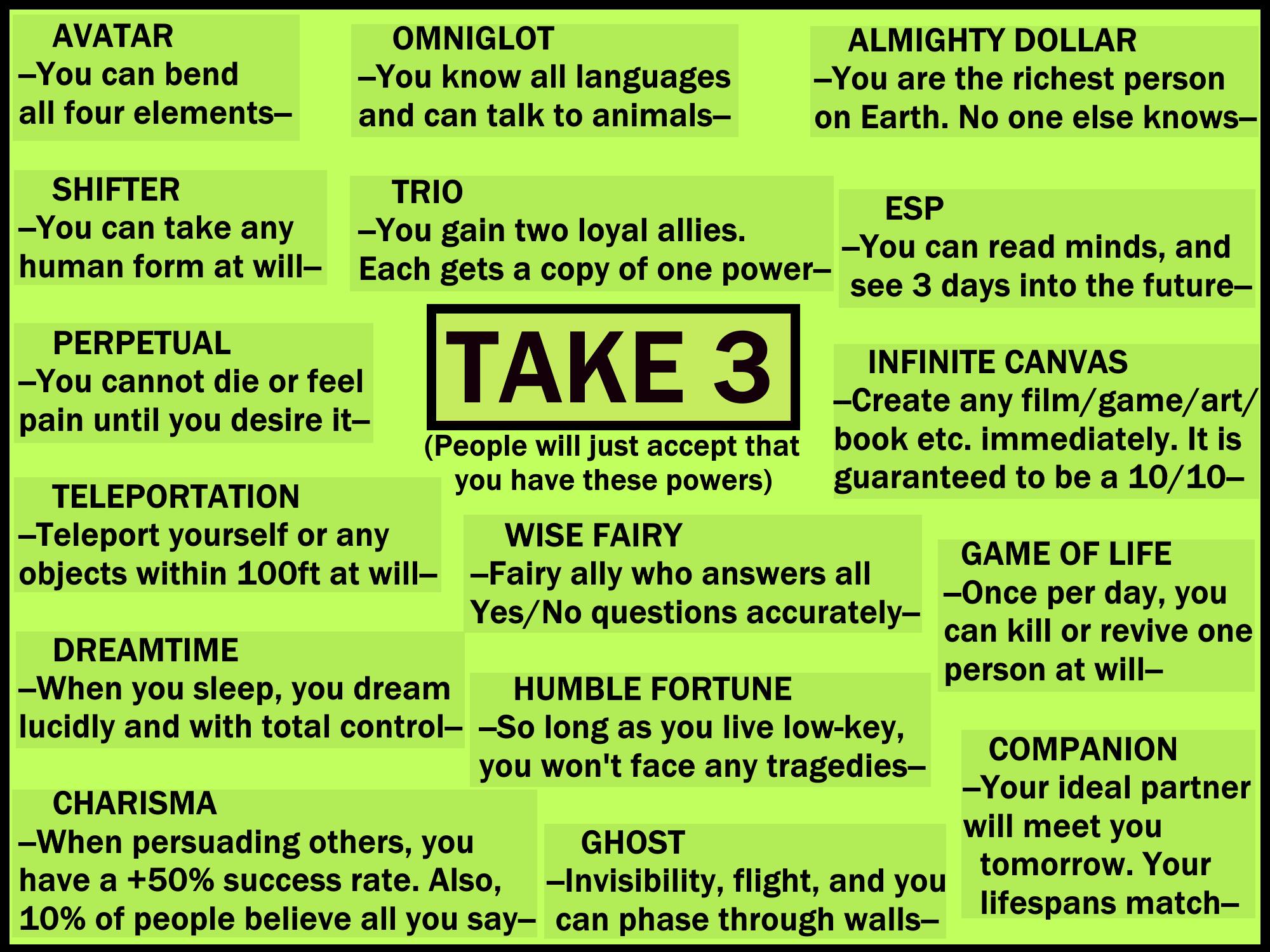 In the wealth section buy some beyonder characteristics.