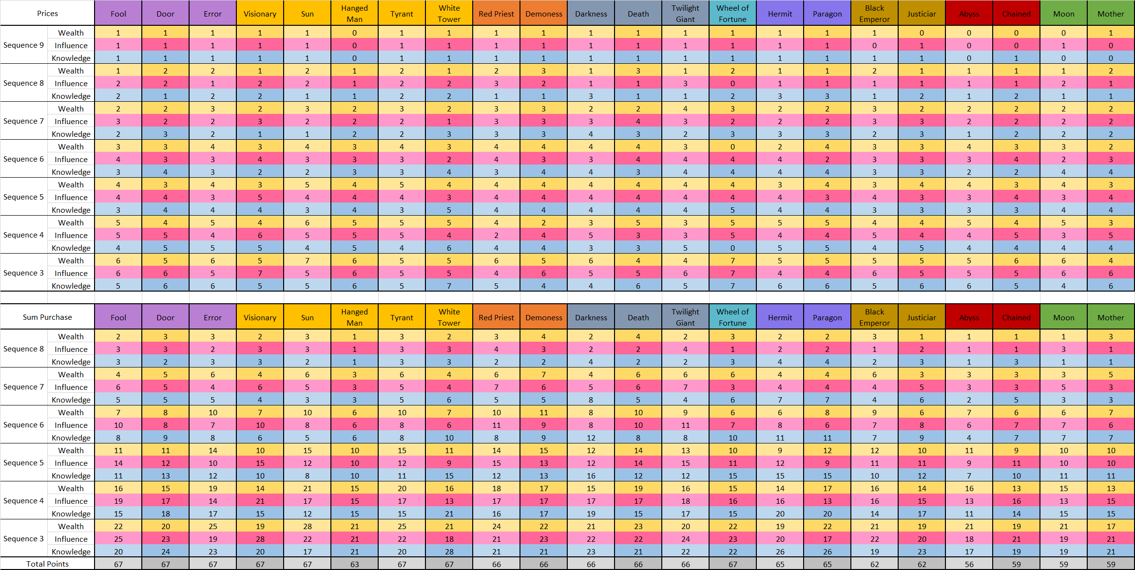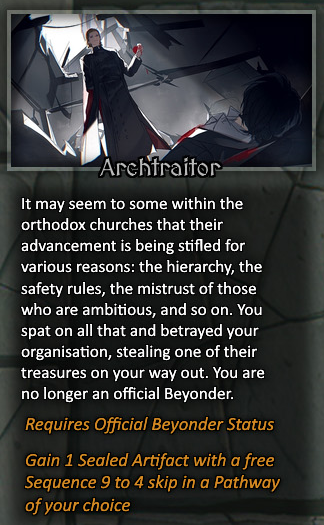 >Wealth: Beyonder Characteristic(S9-8, S9-7)(used for advancement), Beyonder Weapon(Wheel of Fortune S9-6), Charms & Amulets(Wheel of Fortune), Potion Ingredients(Wheel of Fortune S6-4) (-28w)