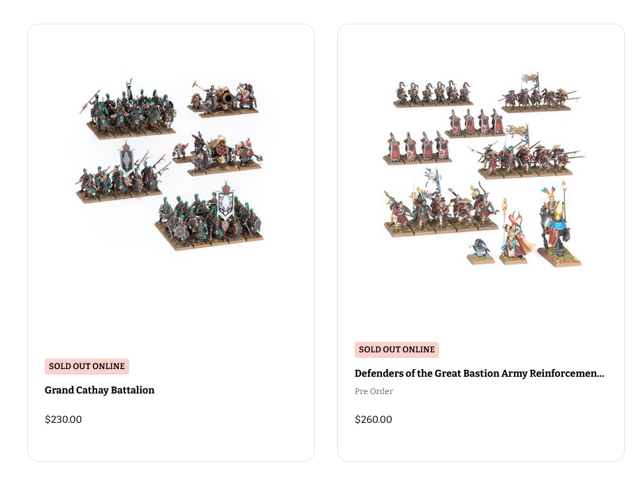 >>97698023I could see GW just making a new Battalion box that includes some of the new peasant models instead of the cannons or cavalry.The WoC box is also sold out, so I expect that to be replaced by something else as well