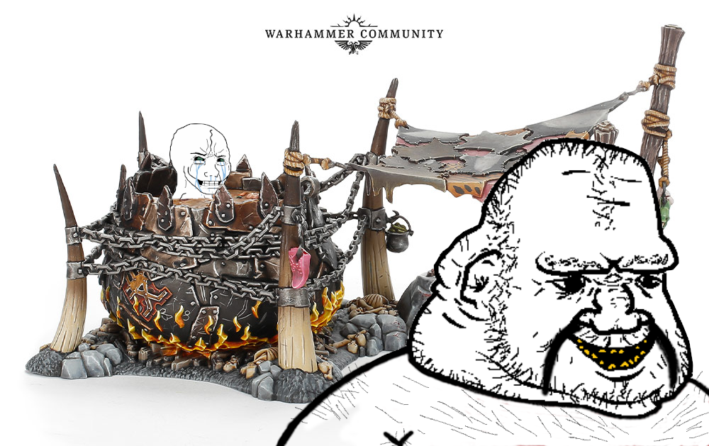 >>97697431It was an interesting idea having something like that I'd assume GW is afraid because they know people are freaks and are gonna find some stupid wombo combo that instantly makes it the default thing and all the sweats are gonna ruin the fun for everyone.It's like "do we wanna put in the work to make this fun and balanced" or just not do it at all and save the trouble.