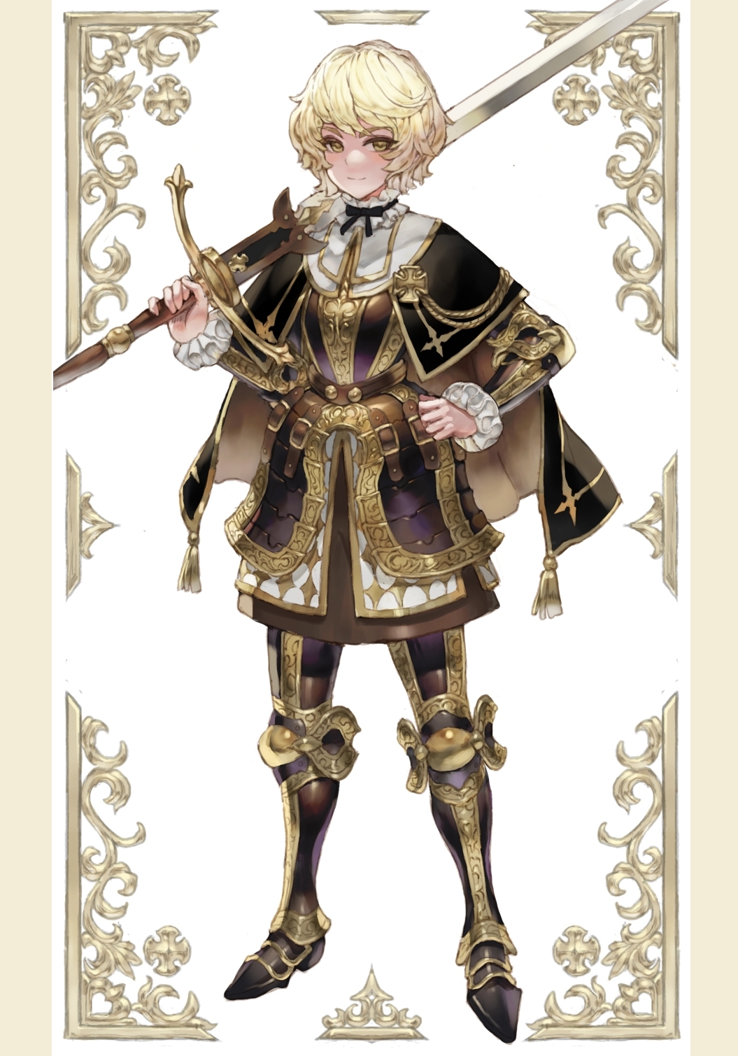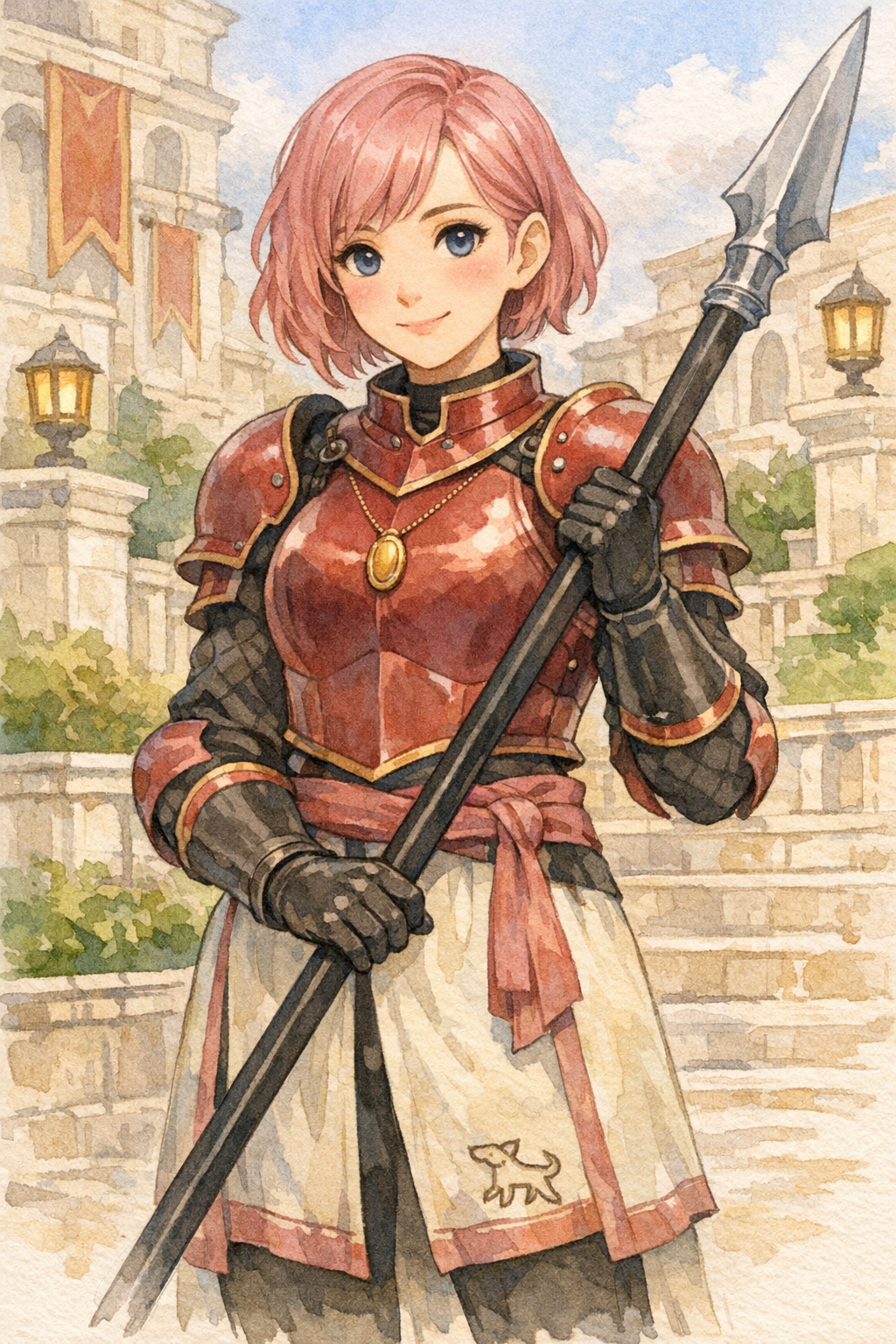 >>97704023I usually cheat a little on these kinds of tables, but the only reroll I did was the the emblem, otherwise I was very happy with my rollsBecoming a knight is a long-standing tradition in her family. Like most squires, she entered knighthood in her teenage years. Though she now bears the title of knight, she is still very new to the role and has little real experience. She is still figuring out what being a knight actually means. So far, however, she has managed not to stab herself with her own weapon, which she considers a promising start.She serves within a military order, carrying out whatever duties are assigned to her.Her weapon of choice is the halberd. She pairs it with a suit of gleaming armor that is far more ornate than practical. The metal shines brilliantly and is covered in intricate engravings, decorative attachments, and elaborate embellishments.Like many knights of her standing, she rides a horse. When fighting, she favors an aggressive and confident approach, pressing forward and attempting to dictate the rhythm of the battle.Despite her martial role, she is known for being deeply pious, humble, and somewhat naïve. Her sincerity and kindness are almost disarming, and those who meet her often find her purity of heart remarkable.She dreams of seeing as much of the world as possible. She wants to travel to distant places, meet new people, and experience everything that life beyond her homeland has to offer.In an unusual twist for someone so inexperienced, she has somehow gathered a small entourage of admirers. Fans, followers, and even a few hopeful suitors sometimes accompany her travels, captivated by her earnest personality and budding reputation.Among the greatest threats she hopes to face are the cruel and arrogant dragons that terrorize the land.She does have one notable weakness: an unhealthy fondness for shopping. Whenever she finds a marketplace, she struggles to resist spending money on frivolous items