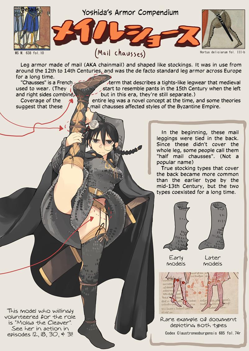 Rolled 17 (1d20)>>97703448>>64-70. Spears and other spear-like polearms.>>71-75. Poleaxes.practically speaking, she'd probably only carry one of those at a time + sword as a backup>>97704639roll for armor
