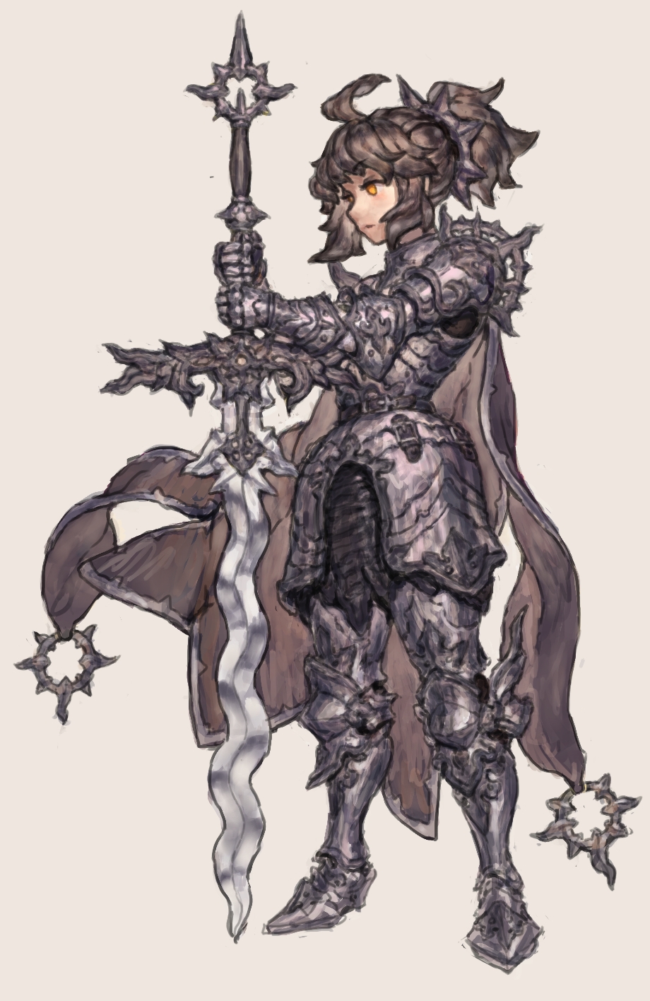>>97704023Made this lady knight with the table.>Former mercenary, who was knighted for bravery in her 30's>Practical armor, uses axes and psychological warfare>Greedy and motivated by money, will do anything for it>Personality is an attention seeking slut>Is now a pilgrim, her enemies are uncaring men>Also norn with a mutation (probably infertile)So a milf barrack slut, that hates men that abandon their families and station. She probably became a mercenary, because she is infertile, so useless. Making money by day with an axe, and with her legs open at night. She saved some noble and became a knight, now following a goddes of ferility and is on a pilgrimage. Distracting her enemies with insults, flirting and no underwear, she strikes fear into unfaithful men.