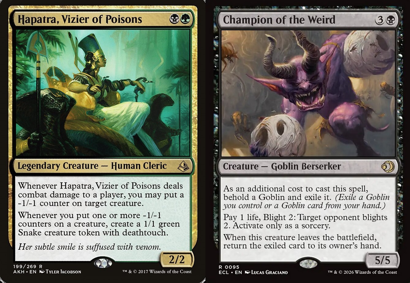 >>97706672Blight not working with Hapatra was unironically one of the top 10 mechanical fuckups WotC has ever done.