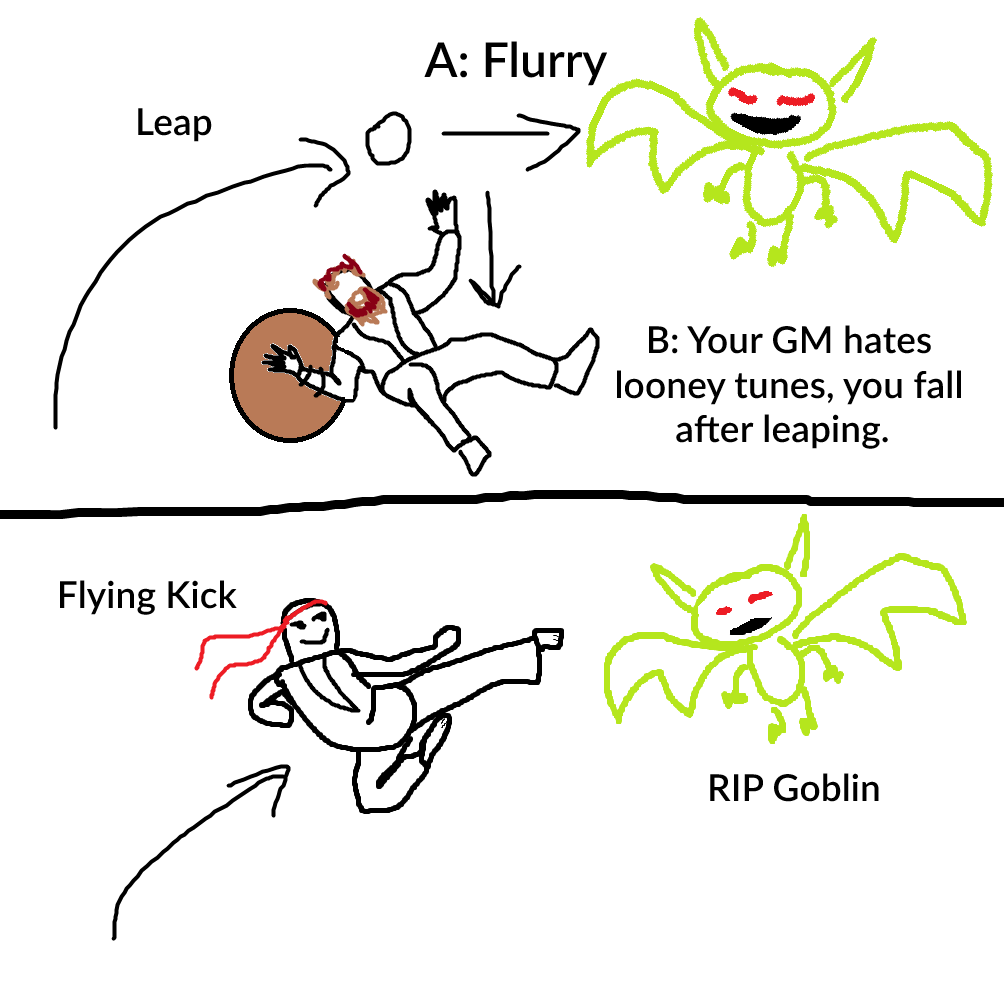 Because I want to go into grap and I wanted some action compression or some extra effects, and Wrestler sucks at that, it’s only good at doing stuff after you’ve already grabbed something. The only options it has, Combat Grab is a fucking press action, and Running Tackle is completely useless once you’re already in melee
