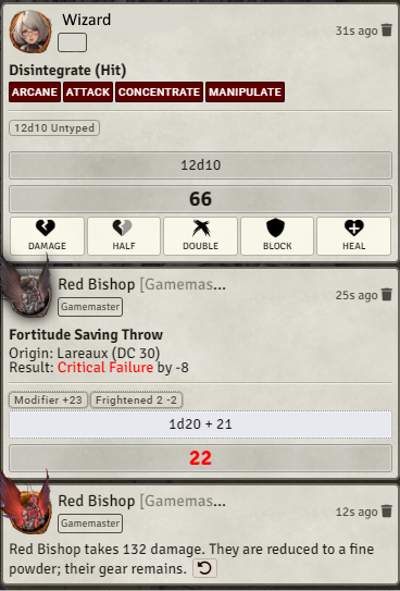 Today, in our first P2E campaign our first player character died in a tragic crit attack into crit death save fail incident. Rest in peace little guy, you will always be remembered.