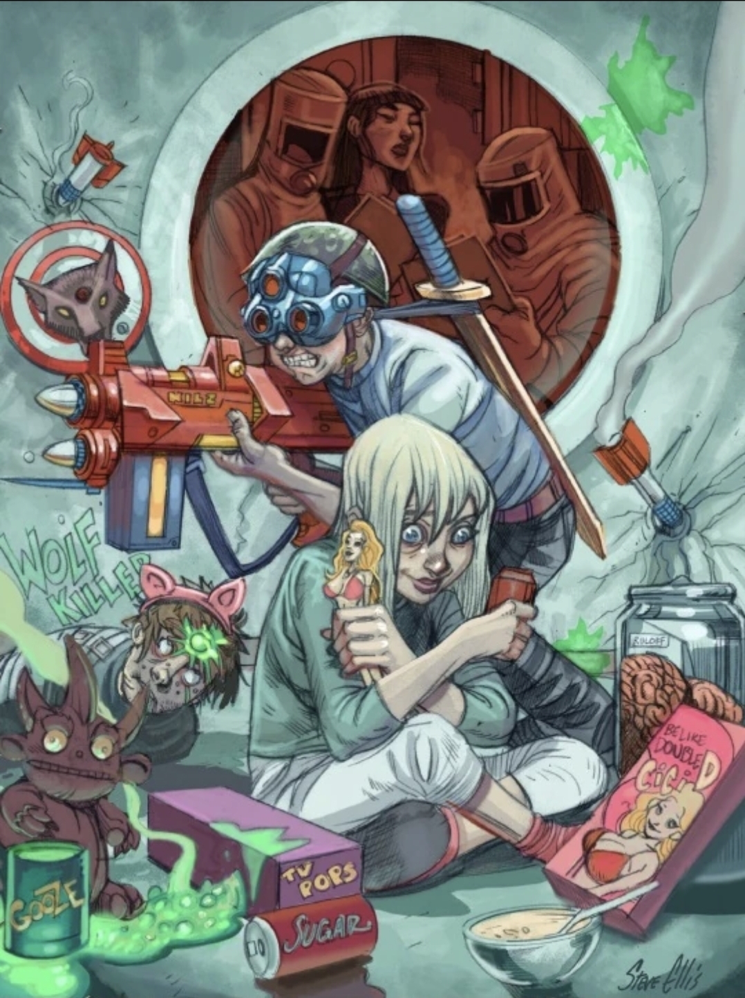 >>97719046A corporate testing facility where children are being made to test spiritually contaminated products designed to warp kids into being exactly the sort of people that the corporation wants them to be.For the boy, toys all about violence and killing anything that's different to him.For the girl, toys all about the importance of achieving unhealthy standards of beauty. For both of them, food and drink packed full of sugar and chemicals that destroy their ability to focus or motivate themselves.
