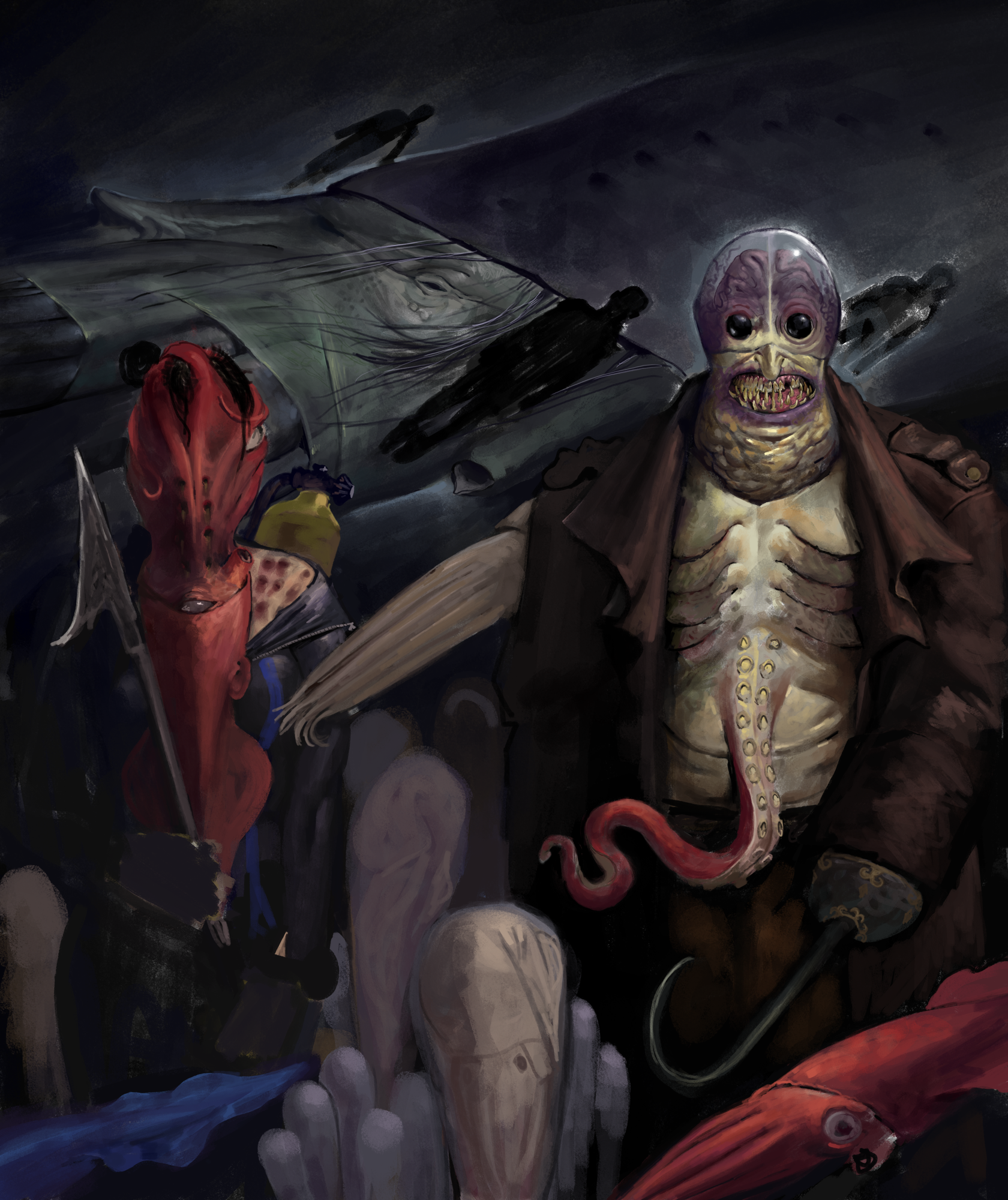 >>97716512Drawfag here, with a little WIP of the Chulorviah, including all three types of them!